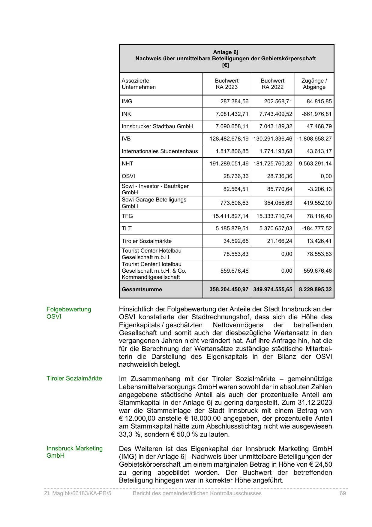 Hinsichtlich der Folgebewertung der Anteile der Stadt Innsbruck an der