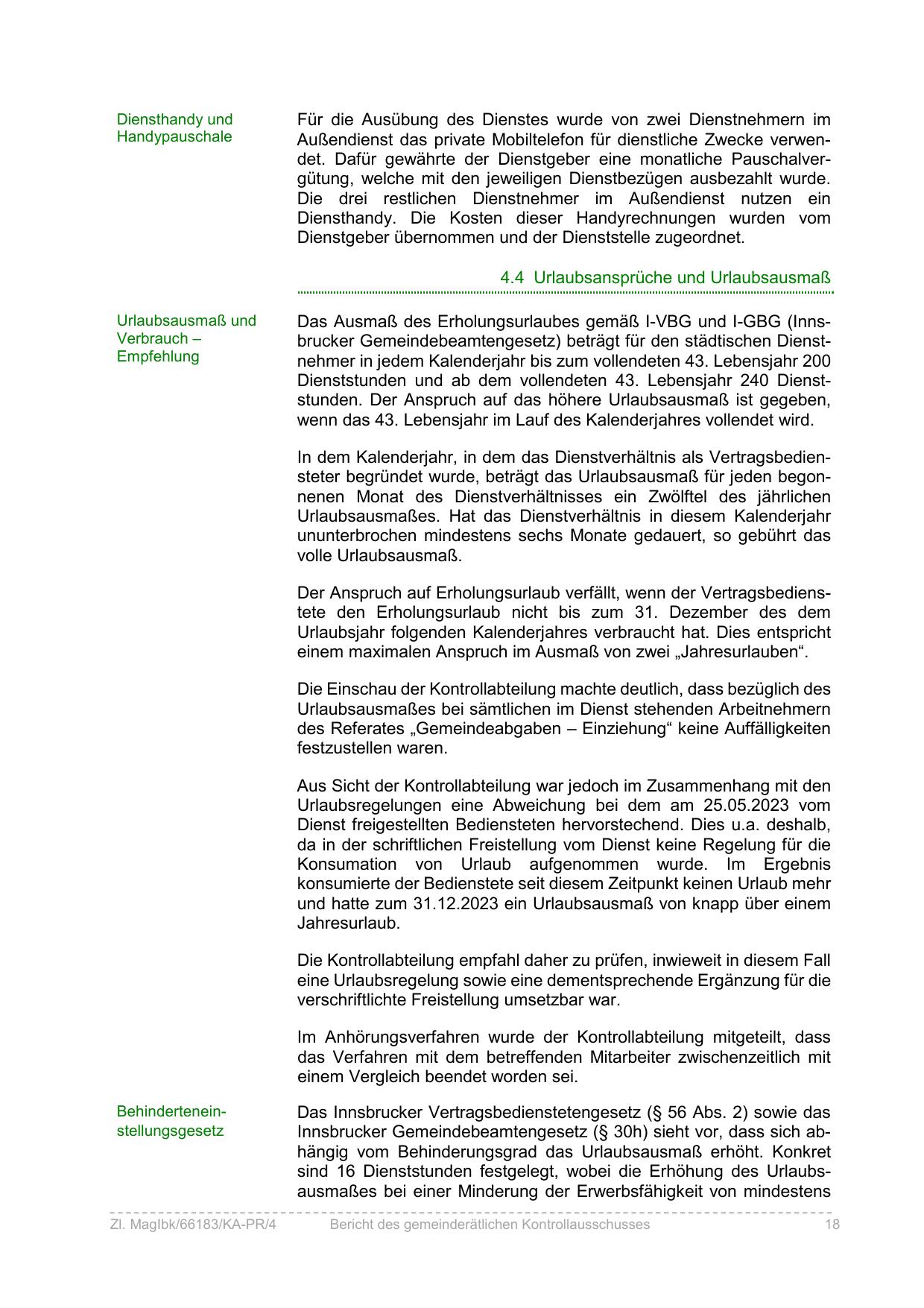 Das Ausmaß des Erholungsurlaubes gemäß I-VBG und I-GBG (Innsbrucker Gemeindebeamtengesetz) beträgt für den städtischen Dienstnehmer in jedem Kalenderjahr bis zum vollendeten 43. Lebensjahr 200