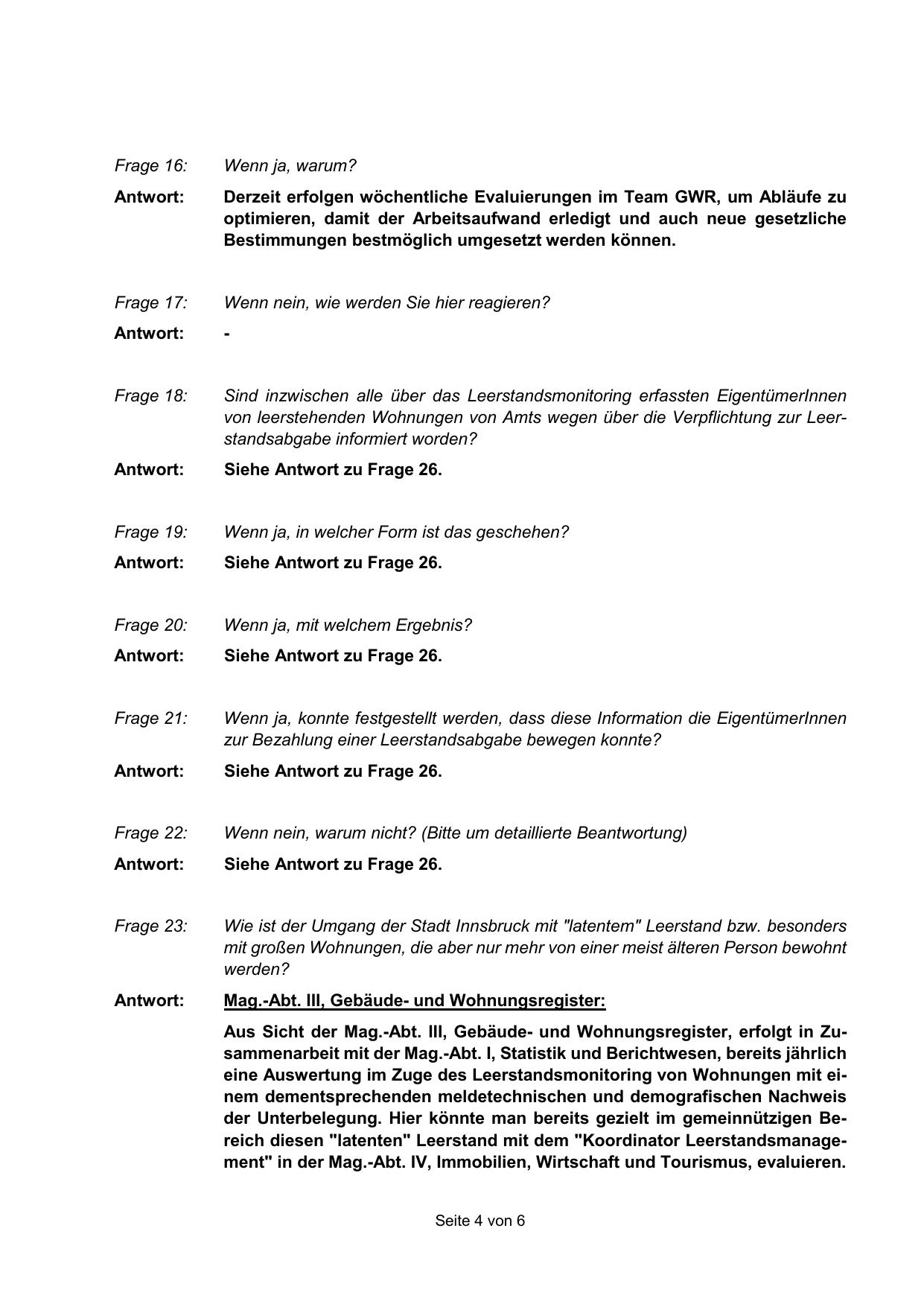 Wie ist der Umgang der Stadt Innsbruck mit "latentem" Leerstand bzw. besonders