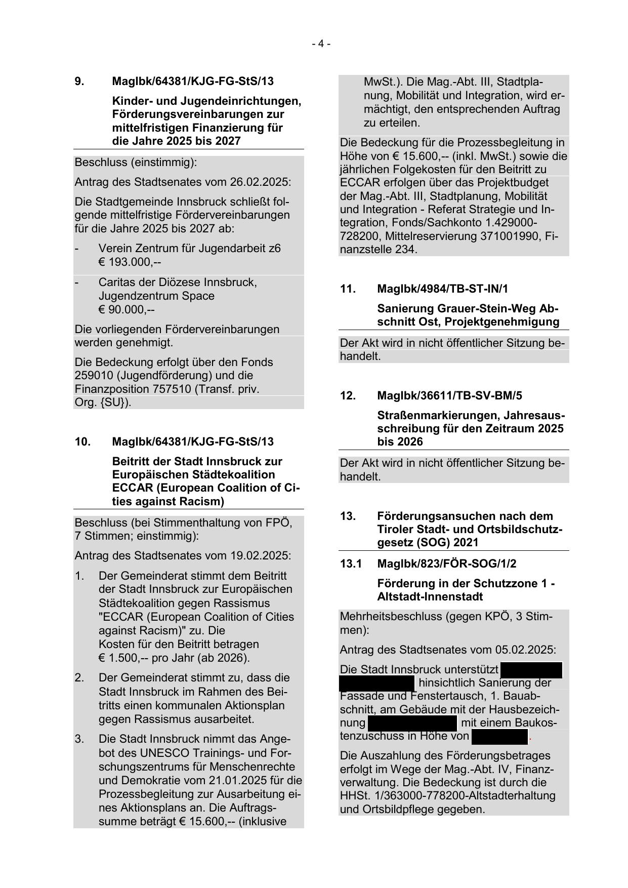 Mehrheitsbeschluss (gegen KPÖ, 3 Stimmen):