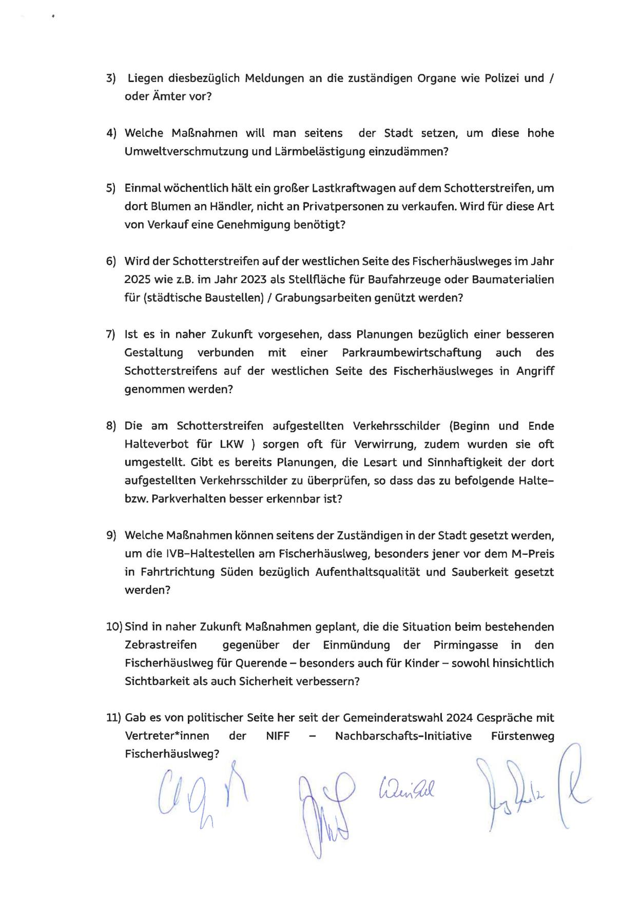 6) Wird der Schotterstreifen auf der westlichen Seite des Fischerhäuslweges im Jahr