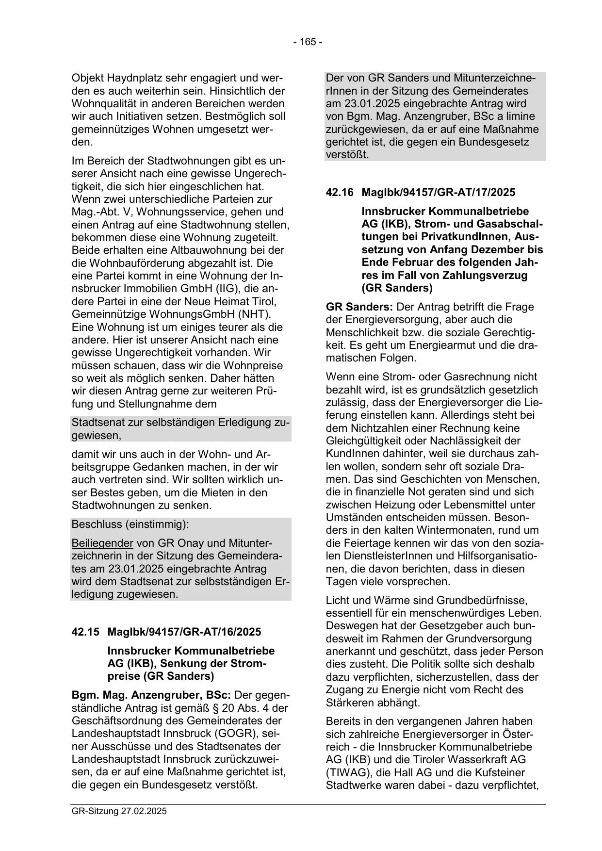AG (IKB), Senkung der Strompreise (GR Sanders)