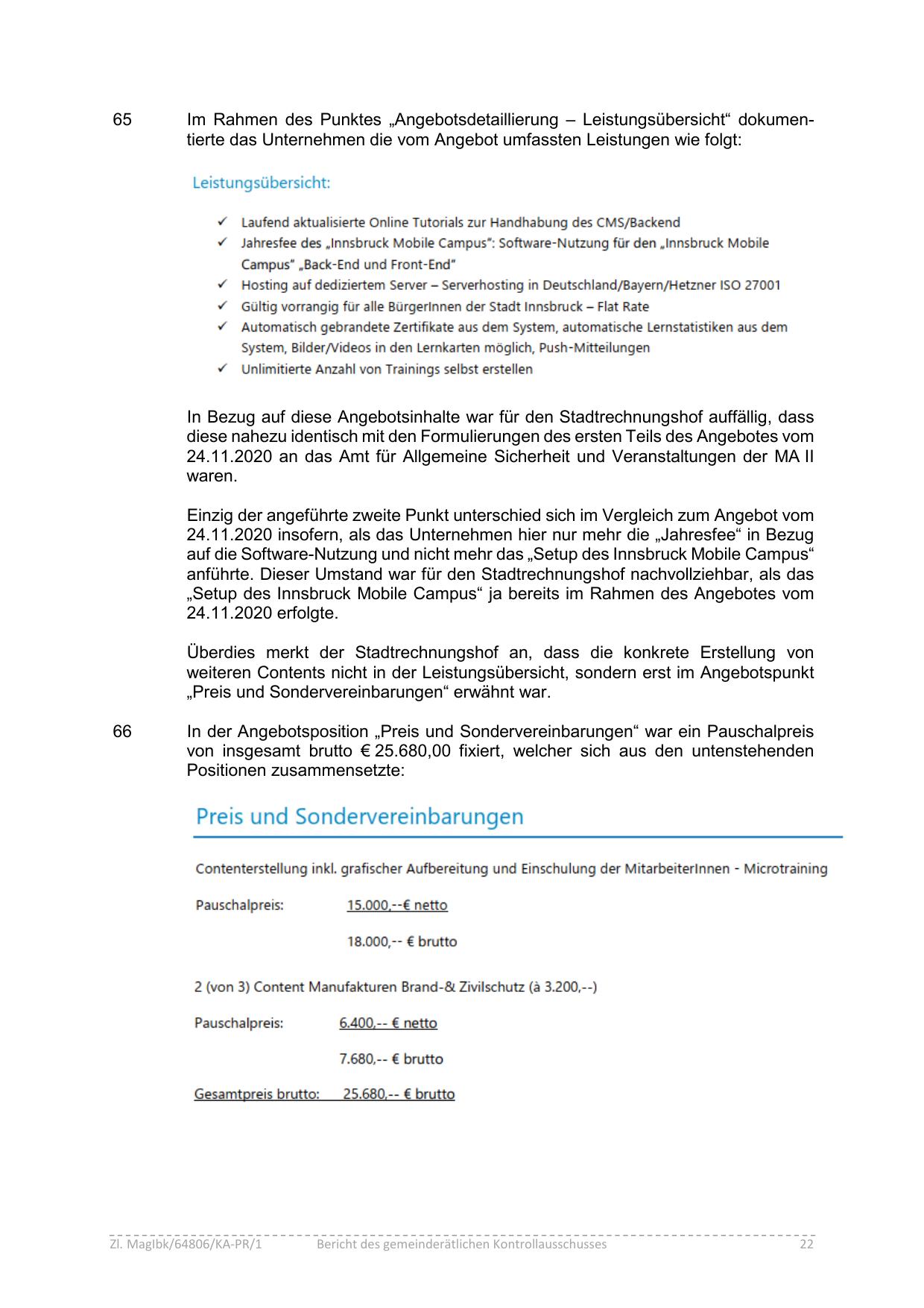Überdies merkt der Stadtrechnungshof an, dass die konkrete Erstellung von