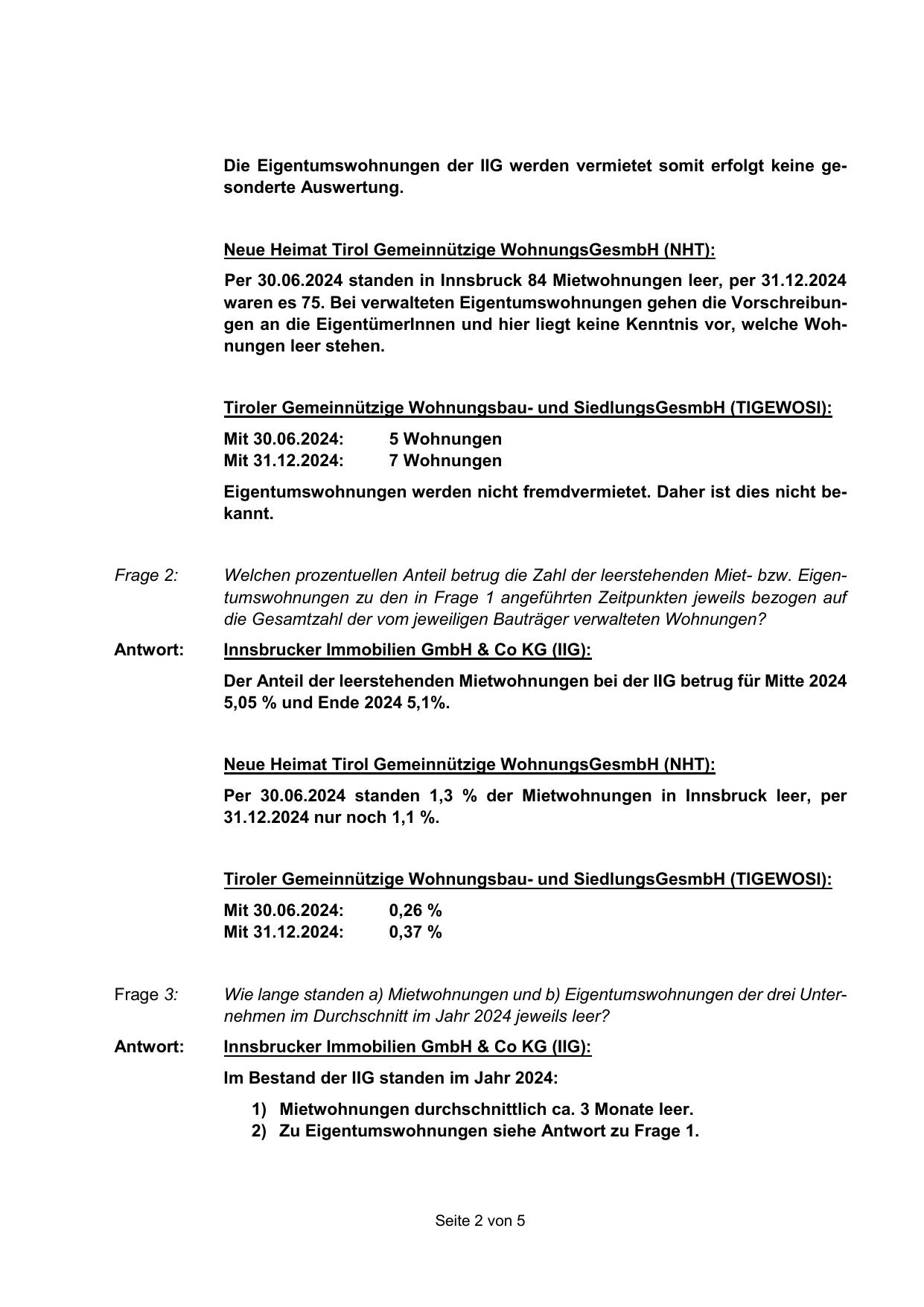 Der Anteil der leerstehenden Mietwohnungen bei der IIG betrug für Mitte 2024
