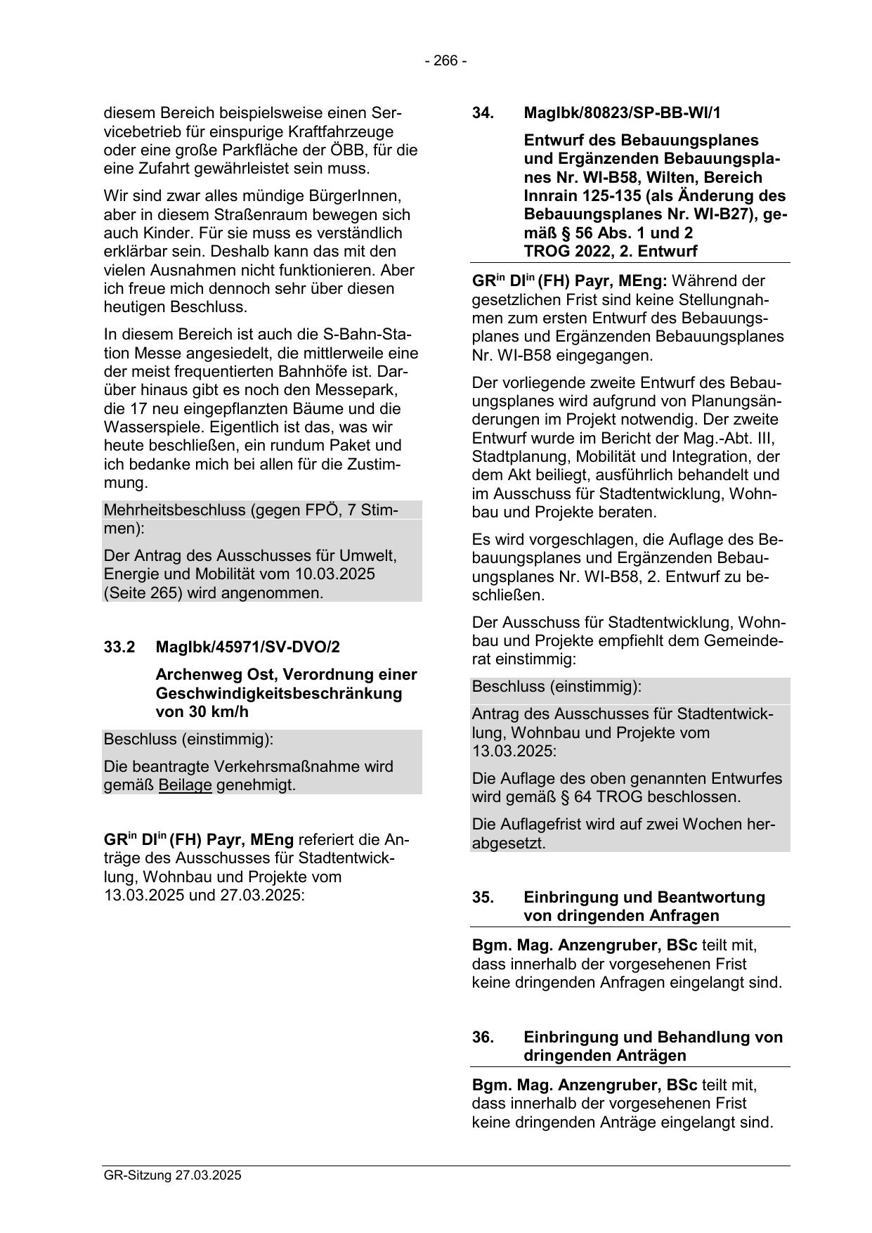 GRin DIin (FH) Payr, MEng referiert die Anträge des Ausschusses für StadtentwickvVom