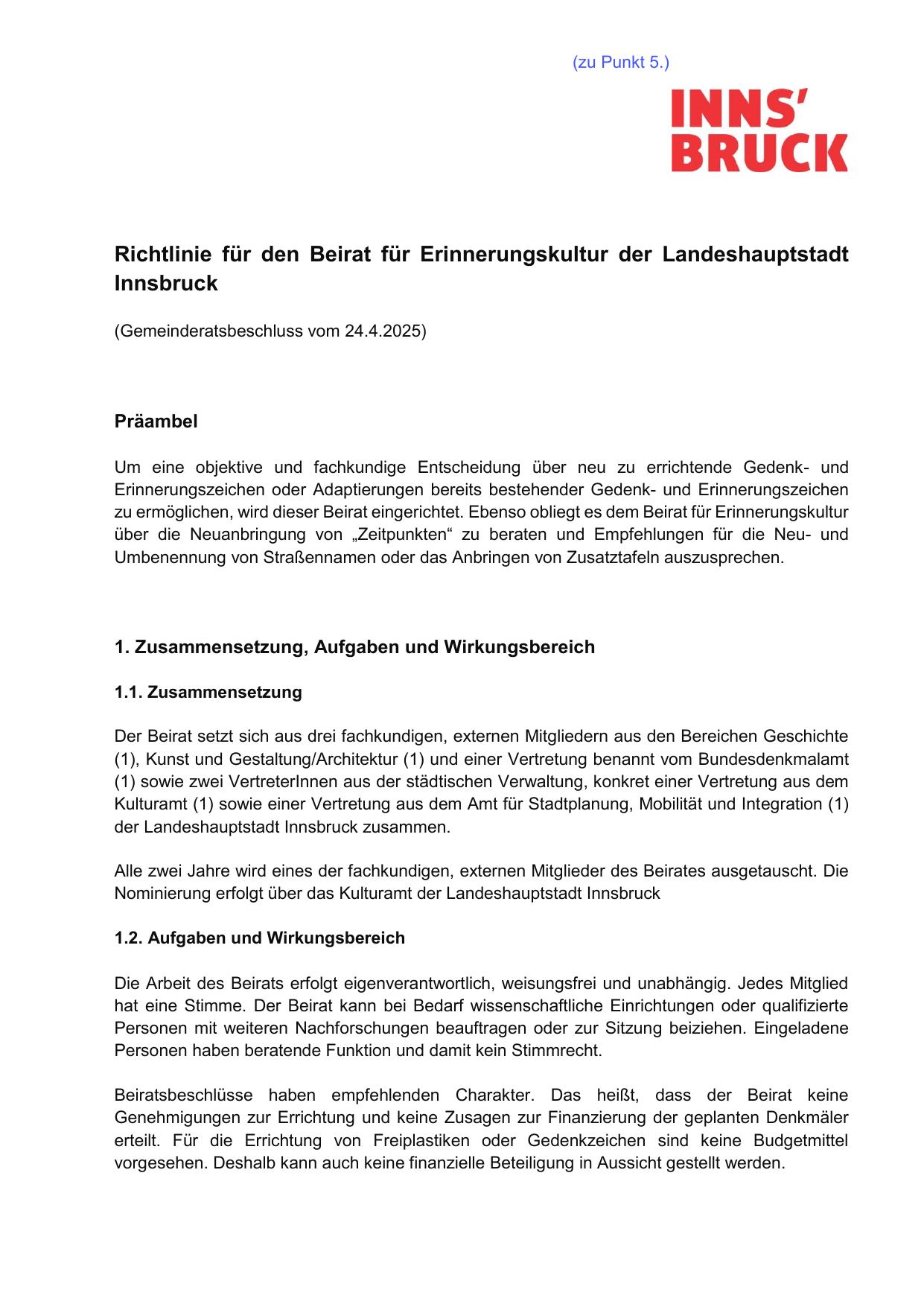 Richtlinie für den Beirat für Erinnerungskultur der Landeshauptstadt