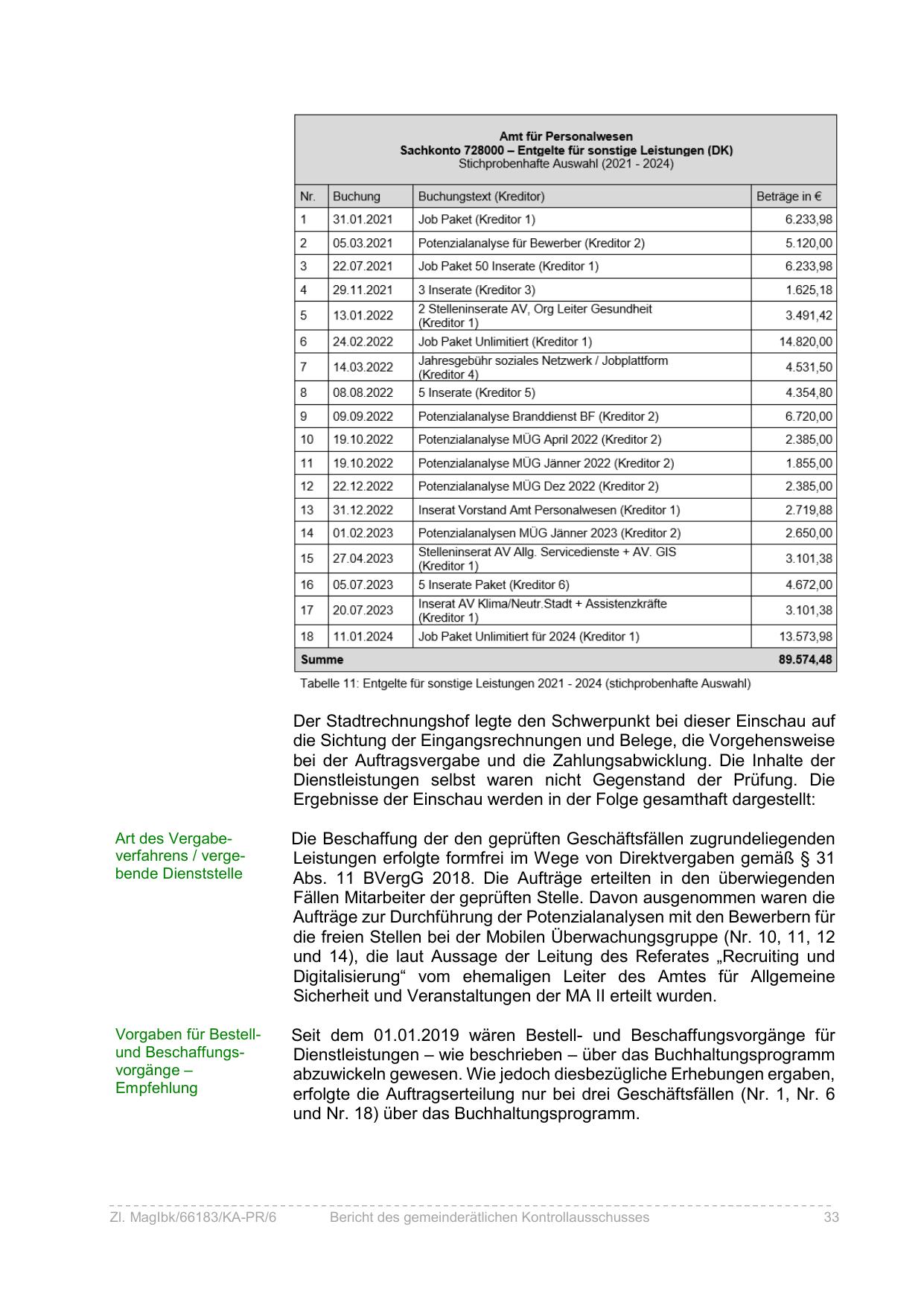 Der Stadtrechnungshof legte den Schwerpunkt bei dieser Einschau auf