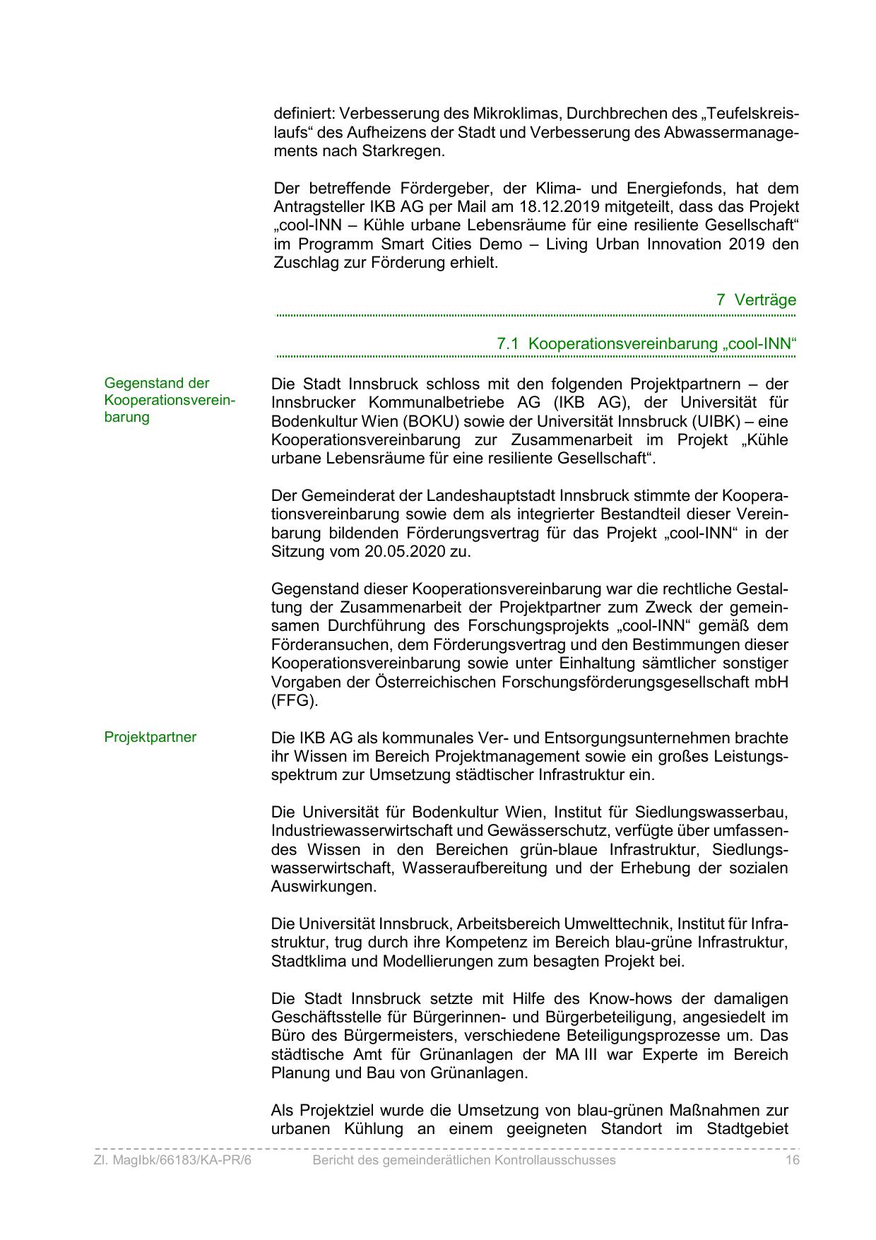 Der Gemeinderat der Landeshauptstadt Innsbruck stimmte der Kooperationsvereinbarung sowie dem als integrierter Bestandteil dieser Vereinbarung bildenden Förderungsvertrag für das Projekt „cool-INN“ in der