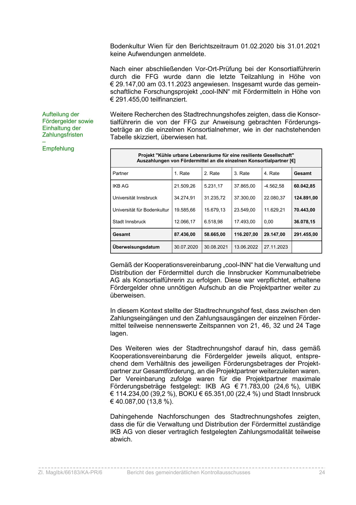 Förderungsbeträge festgelegt: IKB AG € 71.783,00 (24,6 %), UIBK