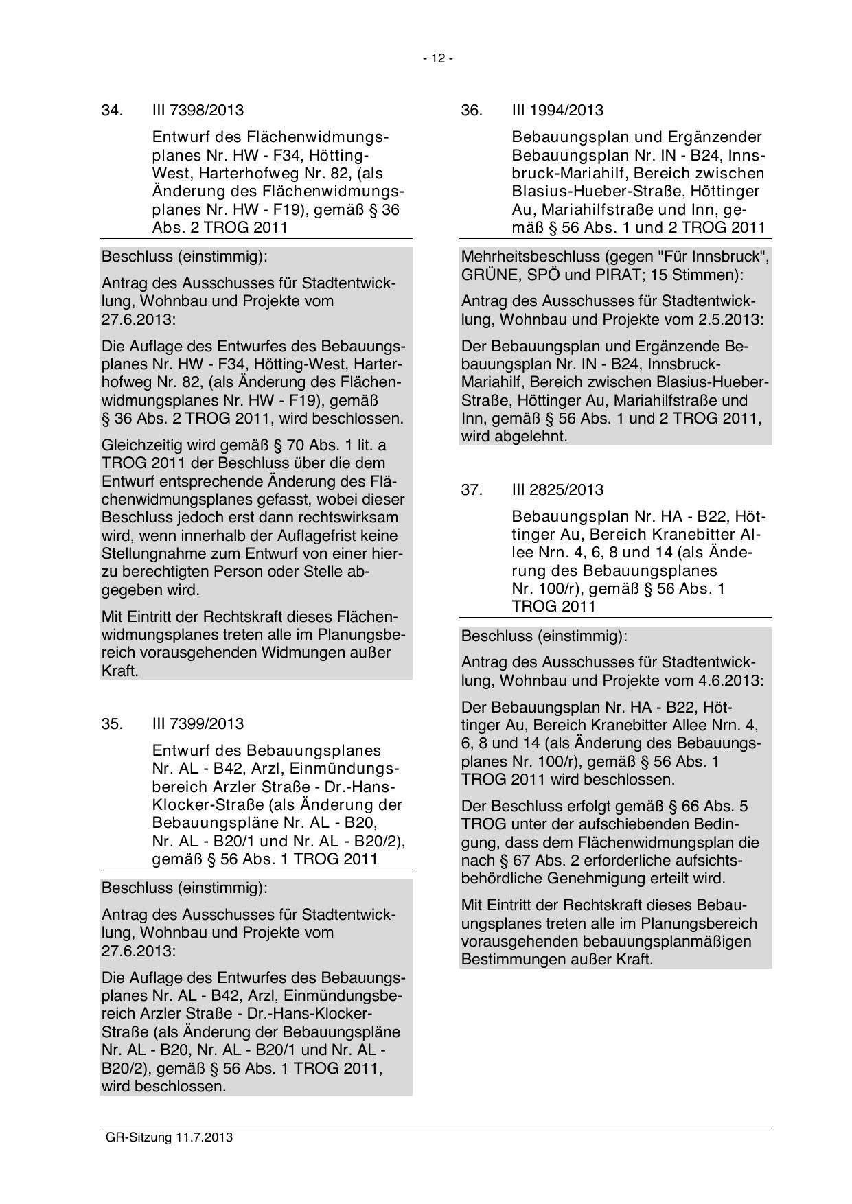 § 36 Abs. 2 TROG 2011, wird beschlossen.