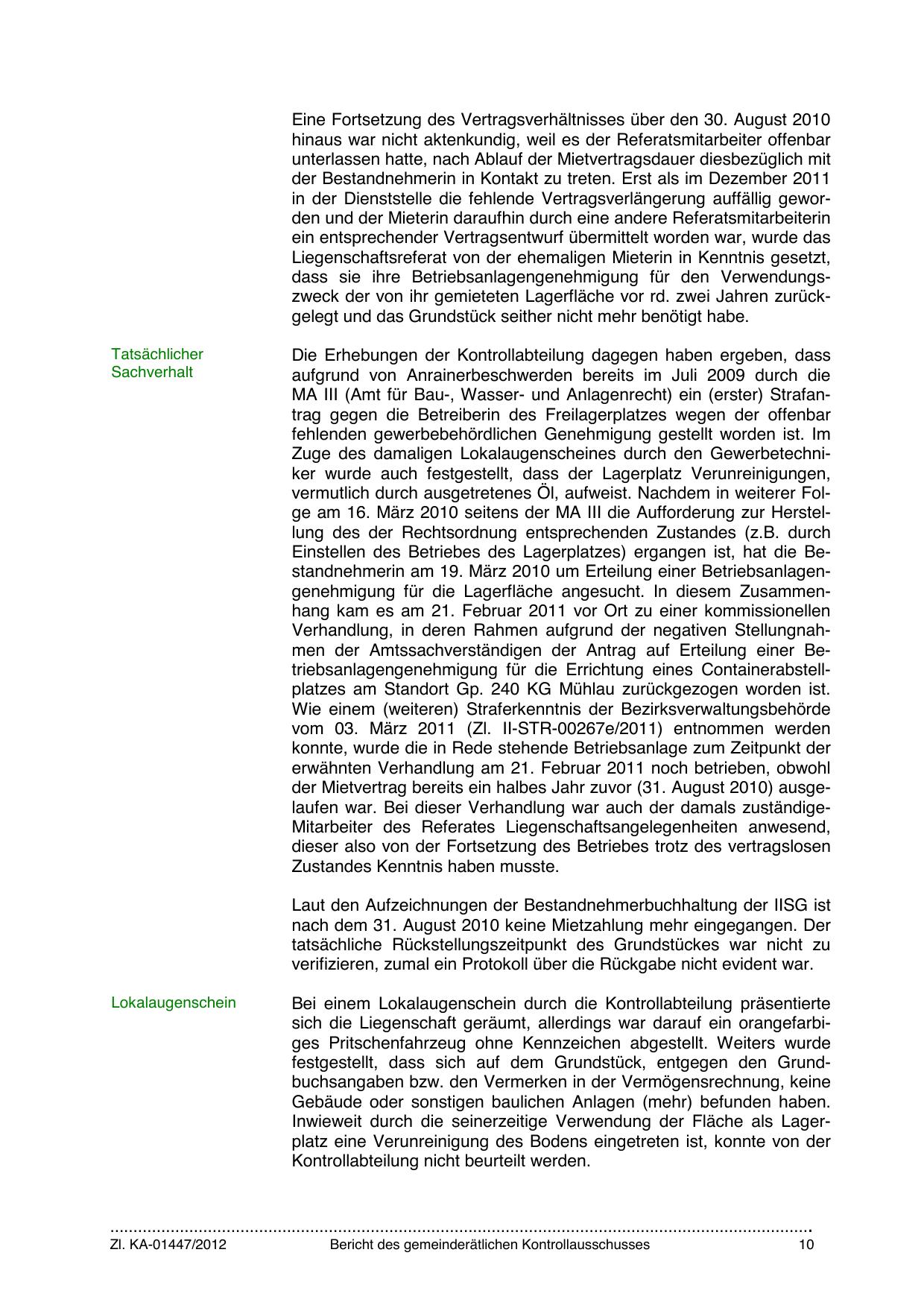 der Mietvertrag bereits ein halbes Jahr zuvor (31. August 2010) ausgelaufen war. Bei dieser Verhandlung war auch der damals zuständigeMitarbeiter des Referates Liegenschaftsangelegenheiten anwesend,