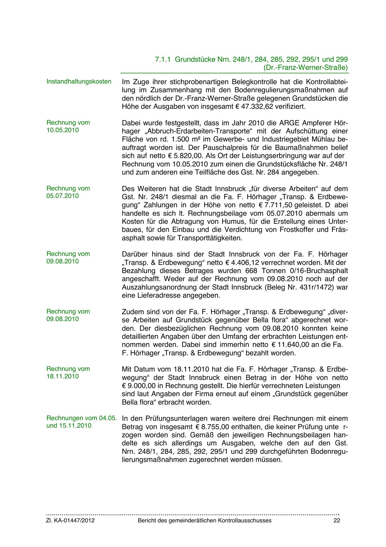 Gst. Nr. 248/1 diesmal an die Fa. F. Hörhager „Transp. & Erdbewegung“ Zahlungen in der Höhe von netto € 7.711,50 geleistet. D abei