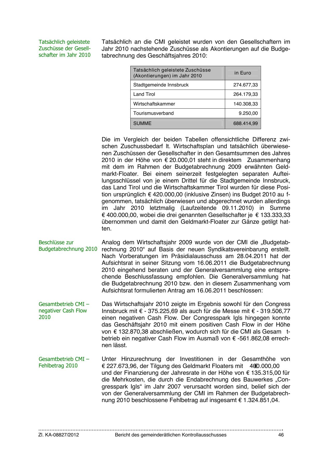 Innsbruck mit € - 375.225,69 als auch für die Messe mit € - 319.506,77