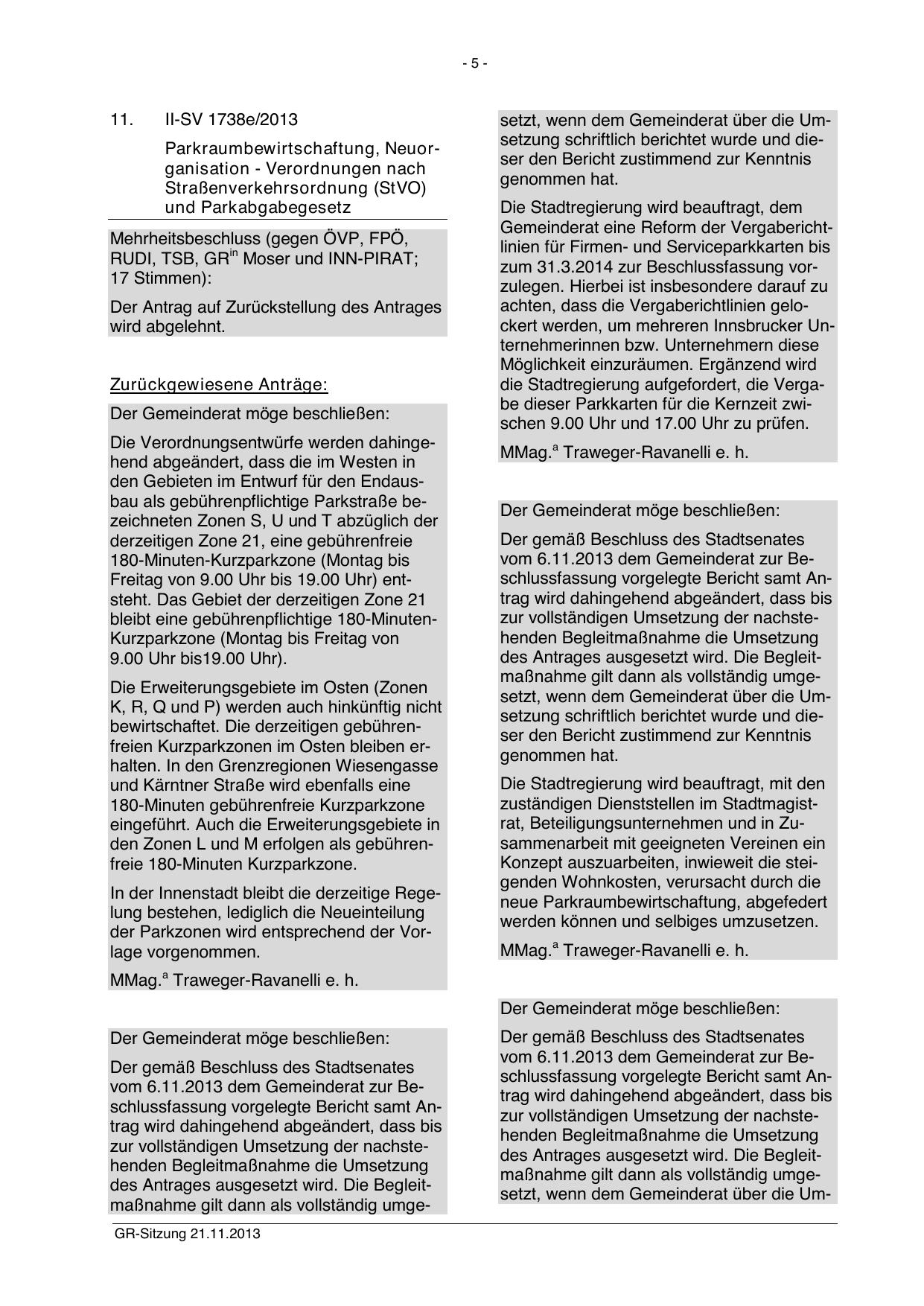 des Antrages ausgesetzt wird. Die Begleitmaßnahme gilt dann als vollständig umgeGR-Sitzung 21.11.2013