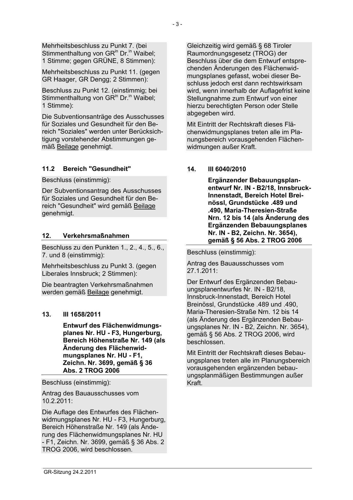 Mehrheitsbeschluss zu Punkt 11. (gegen