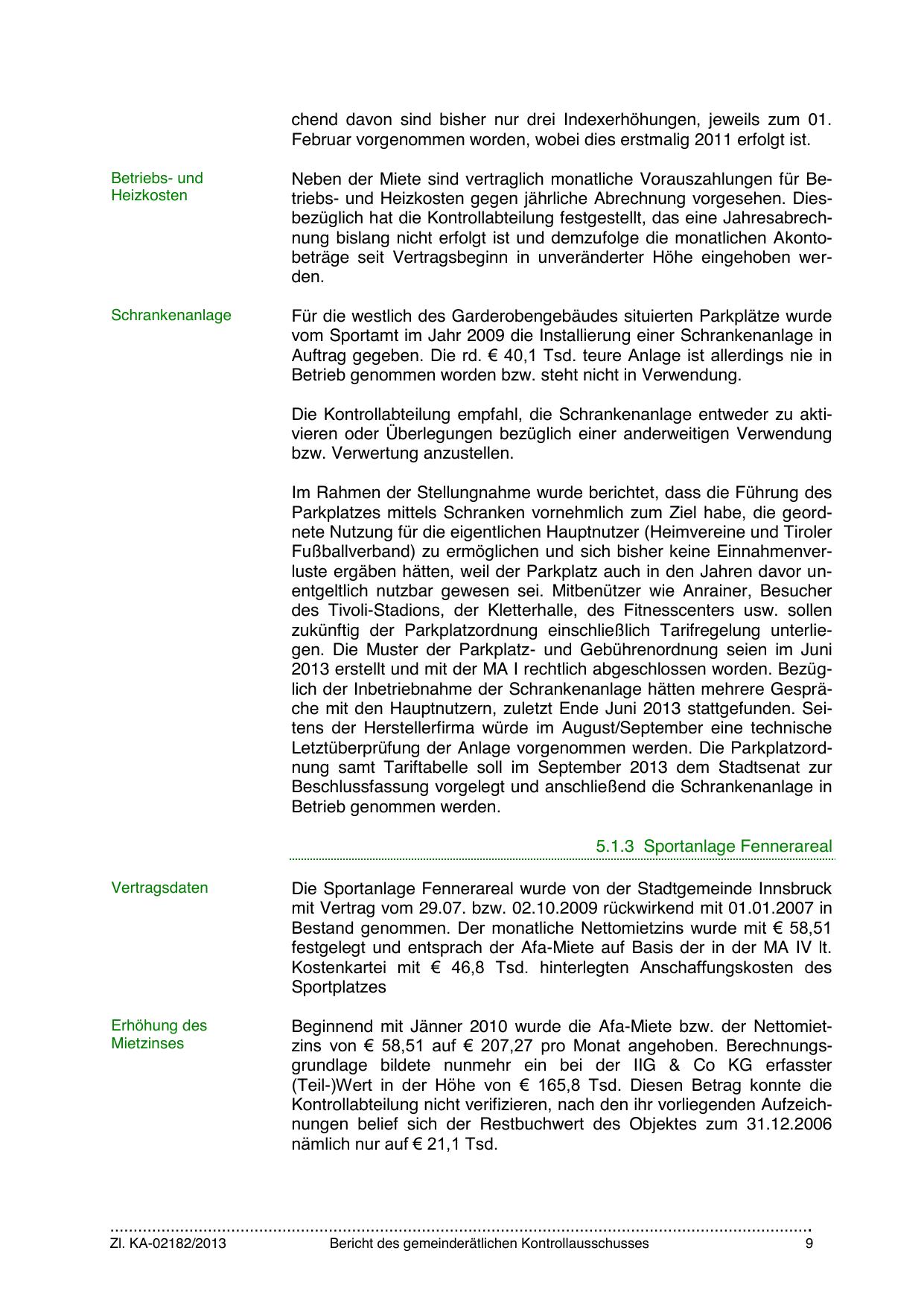 Neben der Miete sind vertraglich monatliche Vorauszahlungen für Betriebs- und Heizkosten gegen jährliche Abrechnung vorgesehen. Diesbezüglich hat die Kontrollabteilung festgestellt, das eine Jahresabrechnung bislang nicht erfolgt ist und demzufolge die monatlichen Akontobeträge seit Vertragsbeginn in unveränderter Höhe eingehoben werden.