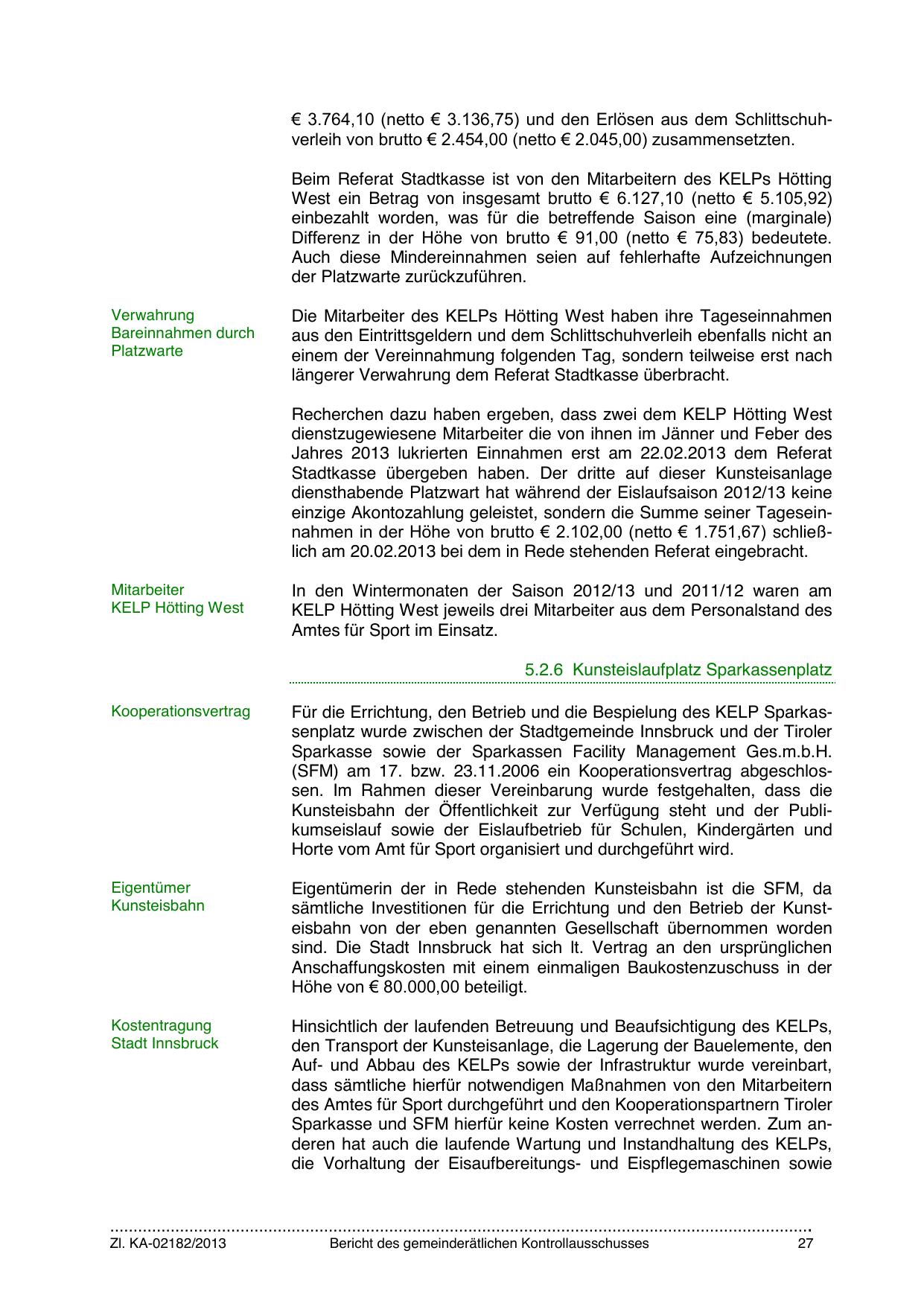 Für die Errichtung, den Betrieb und die Bespielung des KELP Sparkassenplatz wurde zwischen der Stadtgemeinde Innsbruck und der Tiroler