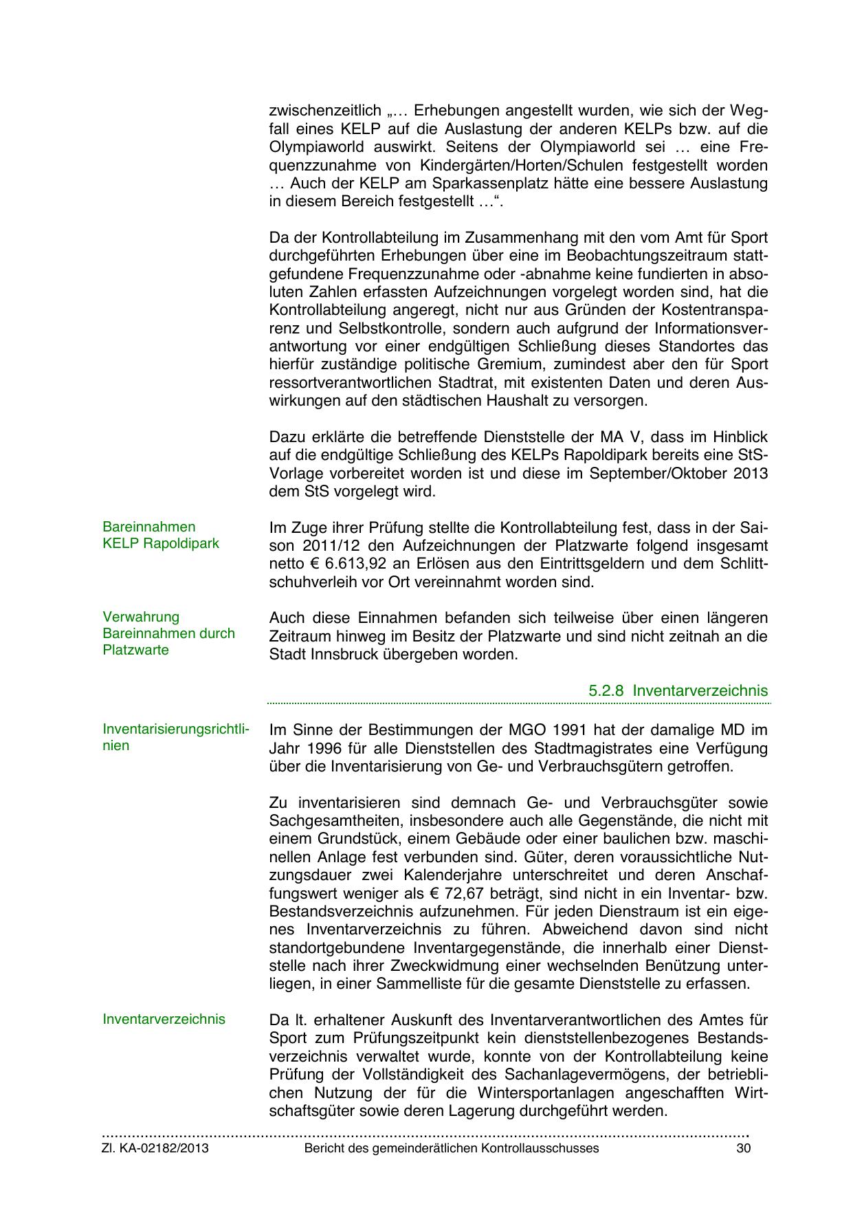 Sport zum Prüfungszeitpunkt kein dienststellenbezogenes Bestandsverzeichnis verwaltet wurde, konnte von der Kontrollabteilung keine