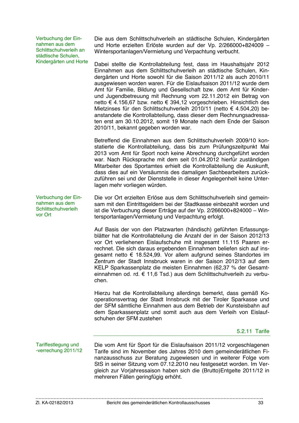 Mietzinses für den Schlittschuhverleih 2010/11 (netto € 4.504,20) beanstandete die Kontrollabteilung, dass dieser dem Rechnungsadressaten erst am 30.10.2012, somit 19 Monate nach dem Ende der Saison