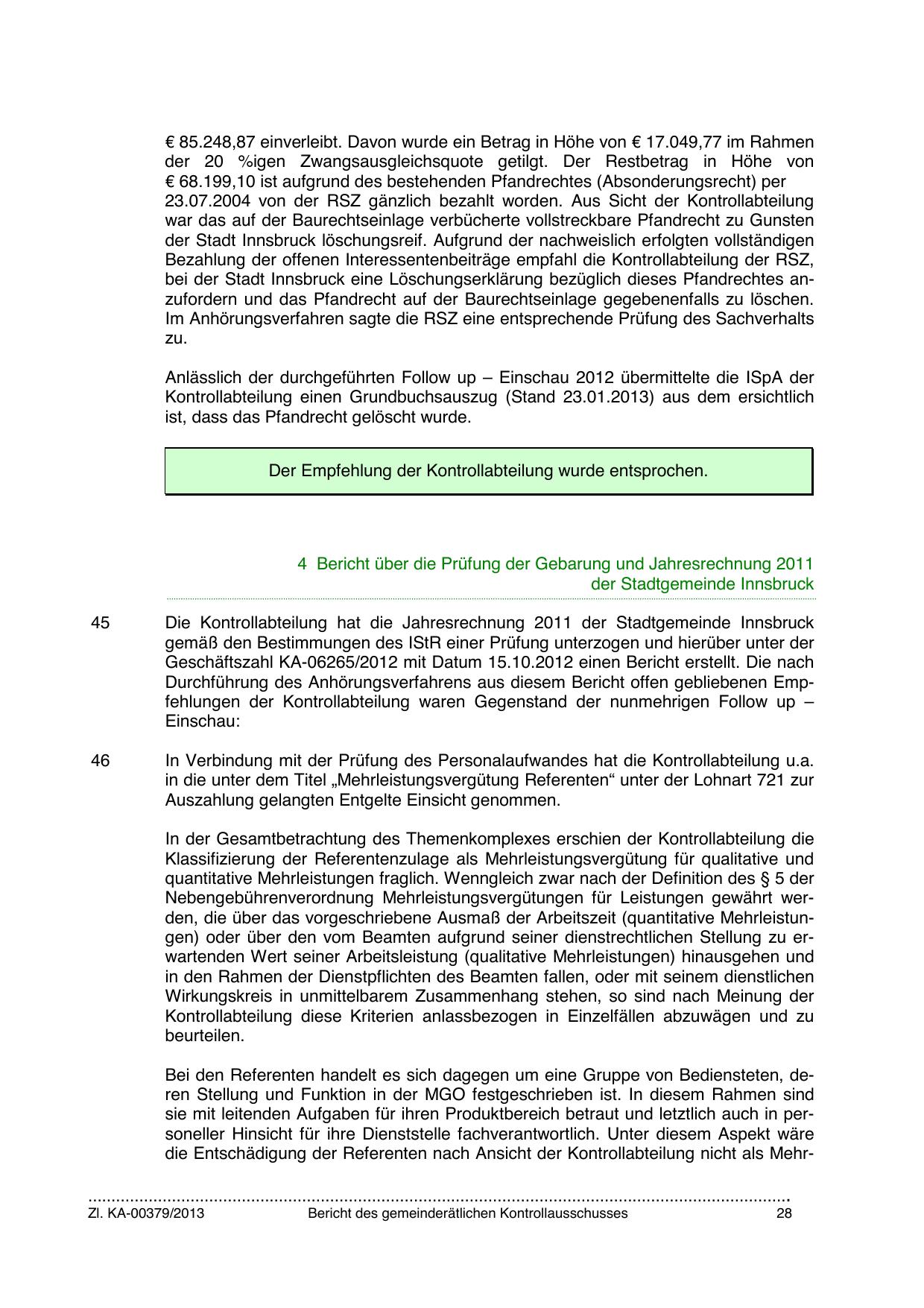 Die Kontrollabteilung hat die Jahresrechnung 2011 der Stadtgemeinde Innsbruck