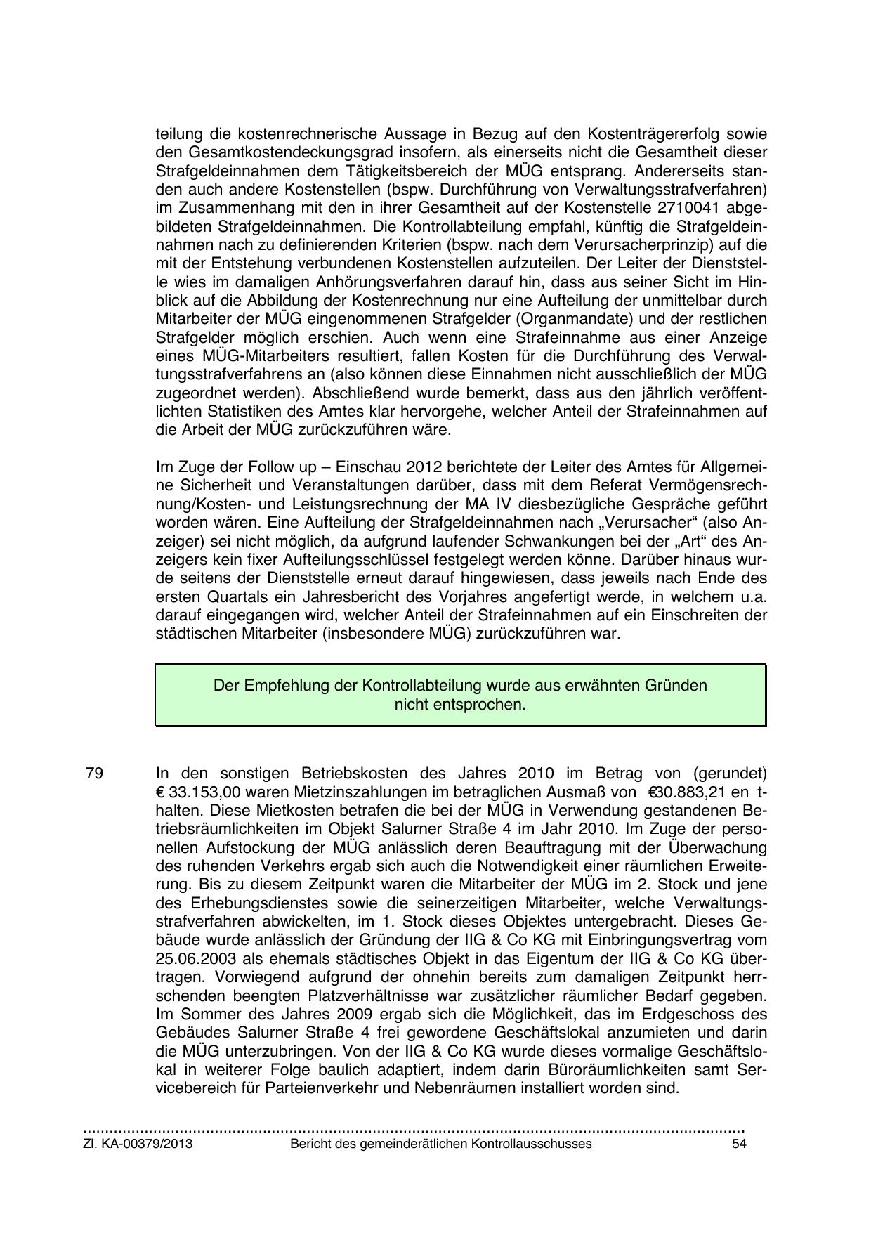 Strafgeldeinnahmen dem Tätigkeitsbereich der MÜG entsprang. Andererseits standen auch andere Kostenstellen (bspw. Durchführung von Verwaltungsstrafverfahren)