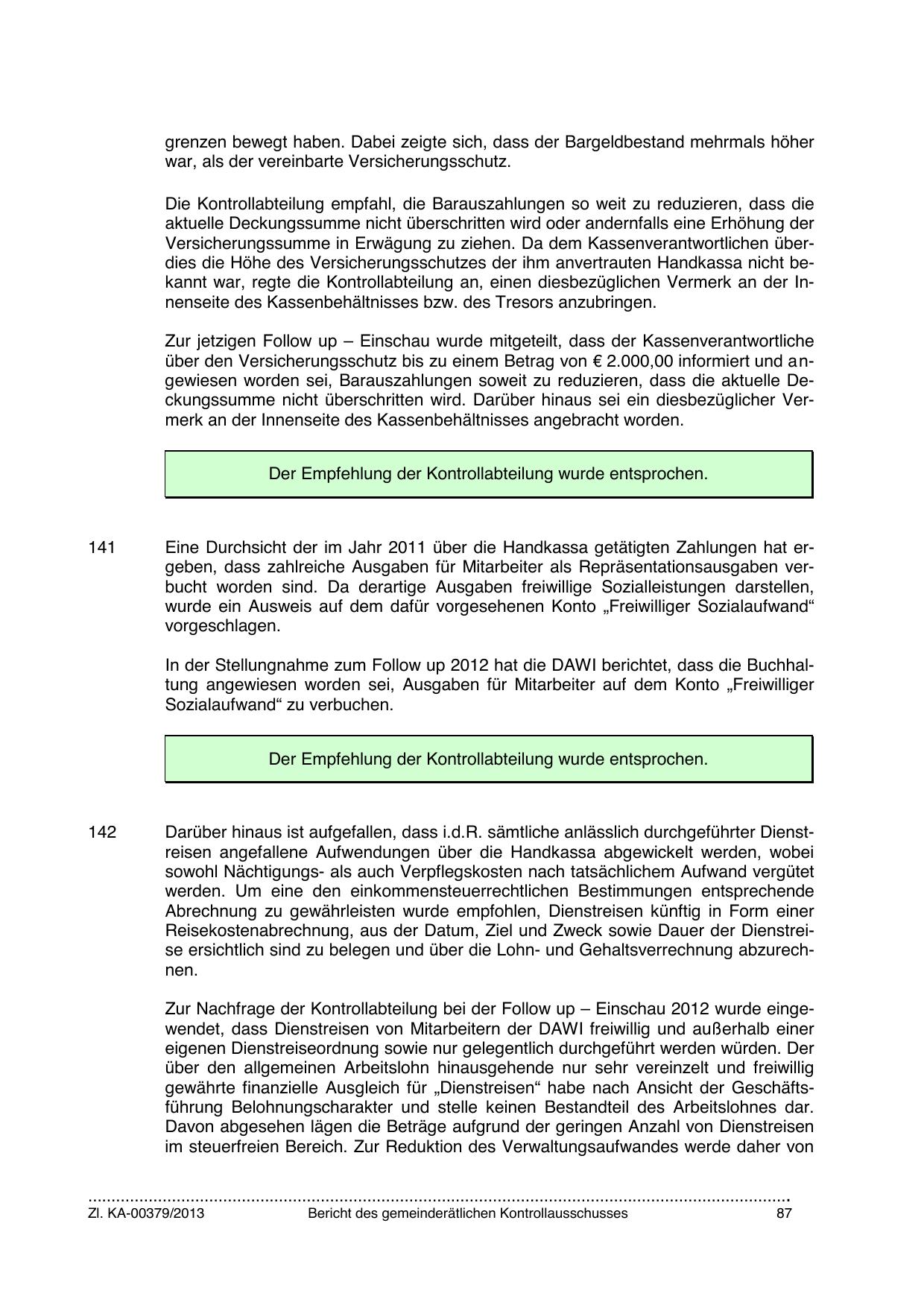 In der Stellungnahme zum Follow up 2012 hat die DAWI berichtet, dass die Buchhaltung angewiesen worden sei, Ausgaben für Mitarbeiter auf dem Konto „Freiwilliger