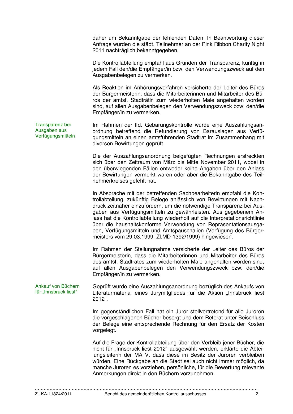 Im Rahmen der lfd. Gebarungskontrolle wurde eine Auszahlungsanordnung betreffend die Refundierung von Barauslagen aus Verfügungsmitteln an einen amtsführenden Stadtrat im Zusammenhang mit