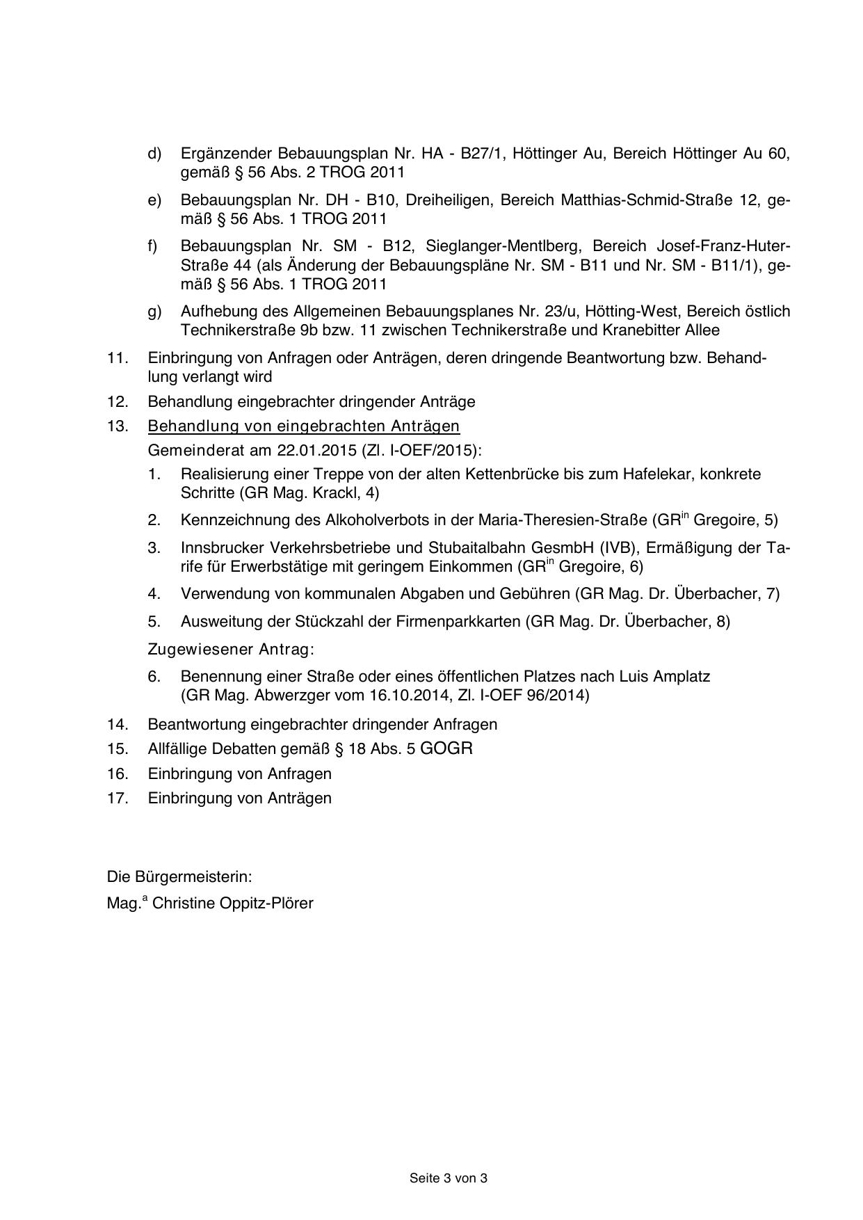 Gemeinderat am 22.01.2015 (Zl. I-OEF/2015):