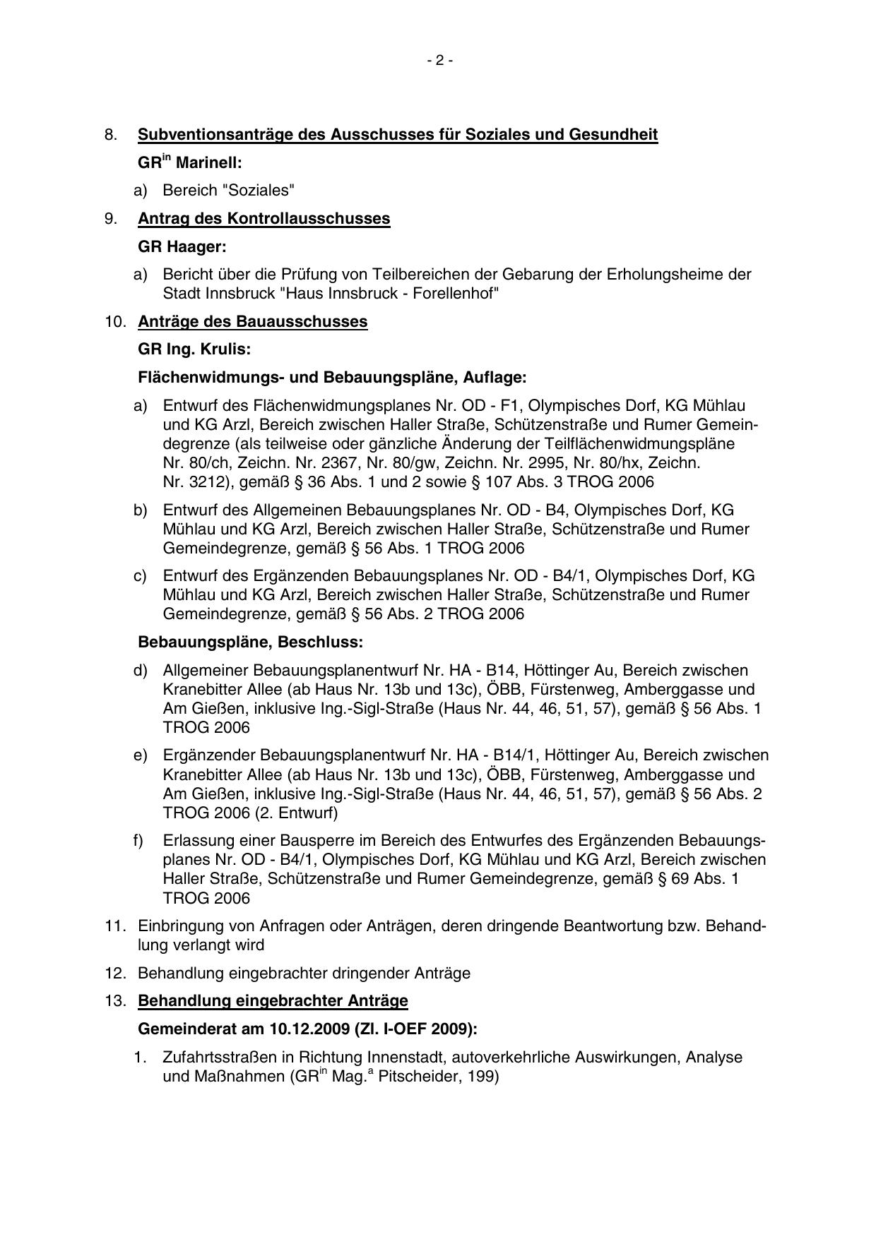 Gemeinderat am 10.12.2009 (Zl. I-OEF 2009):