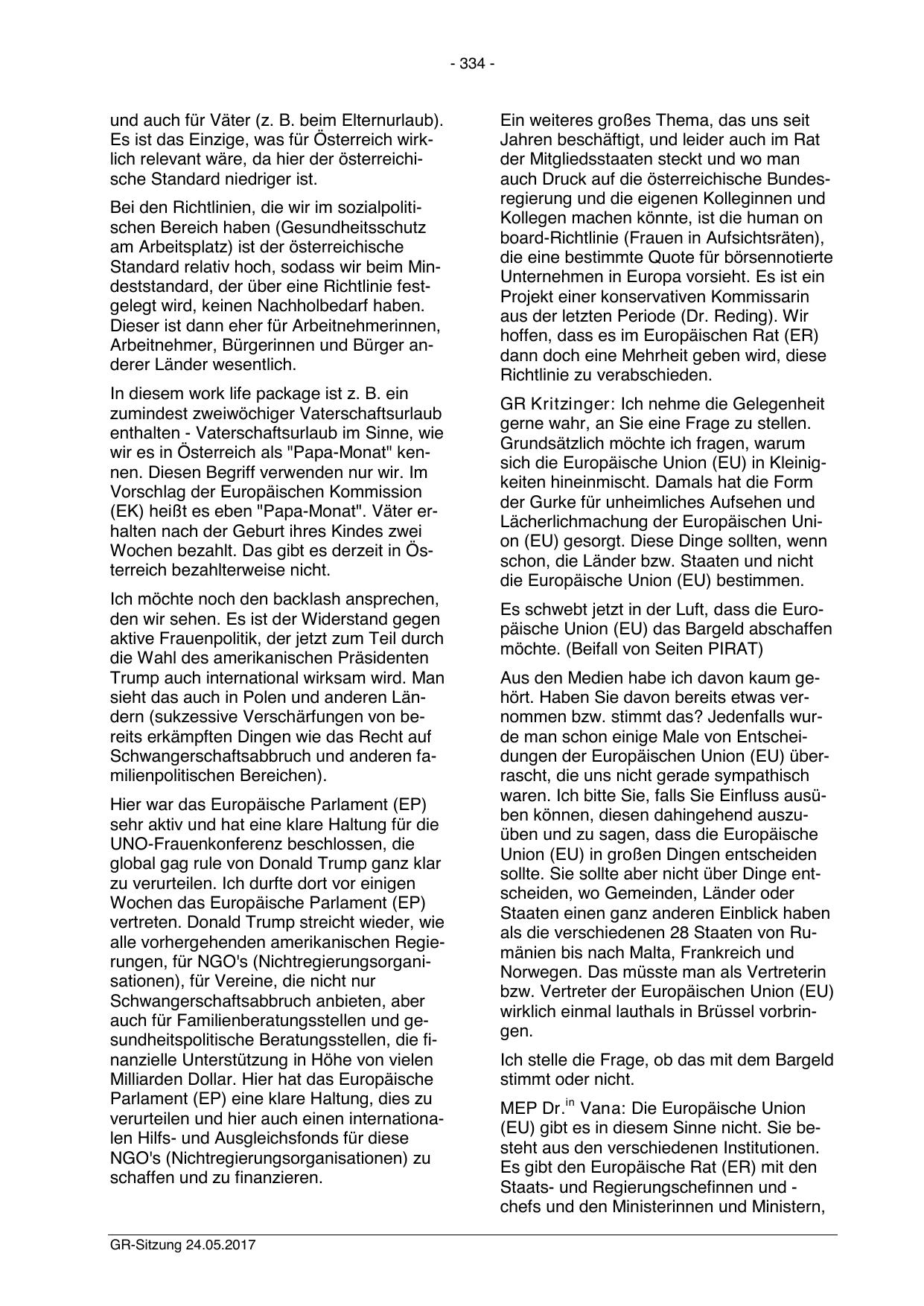auch Druck auf die österreichische Bundesregierung und die eigenen Kolleginnen und