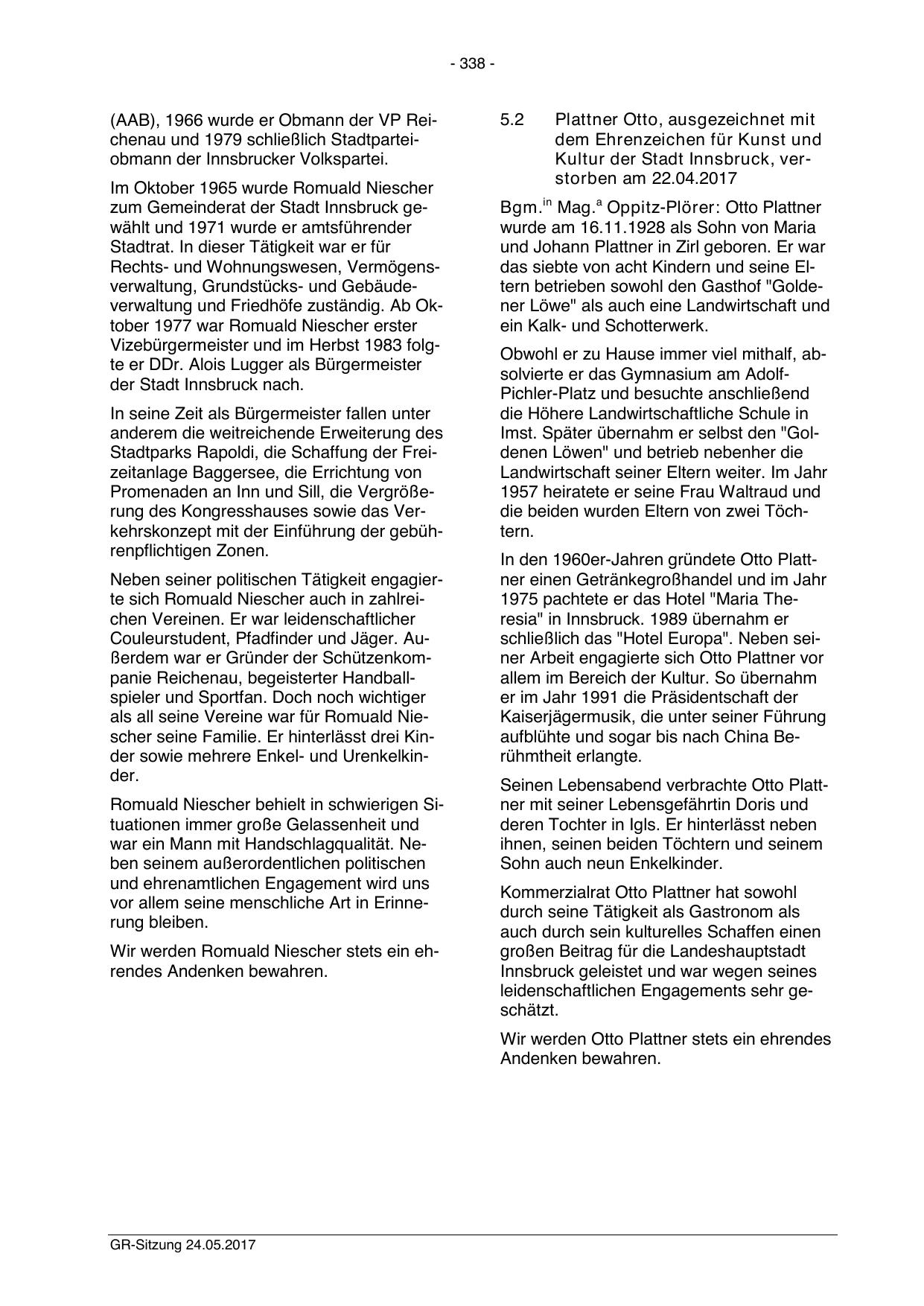 Kultur der Stadt Innsbruck, verstorben am 22.04.2017