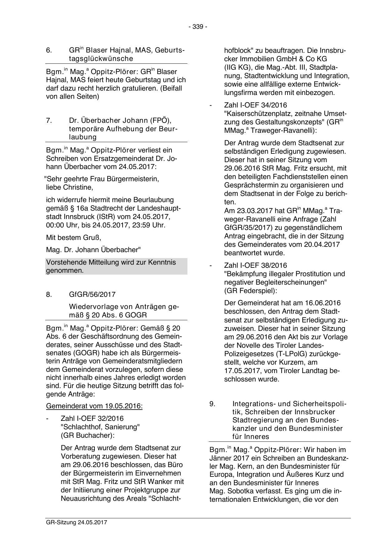 gemäß § 16a Stadtrecht der Landeshauptstadt Innsbruck (IStR) vom 24.05.2017,