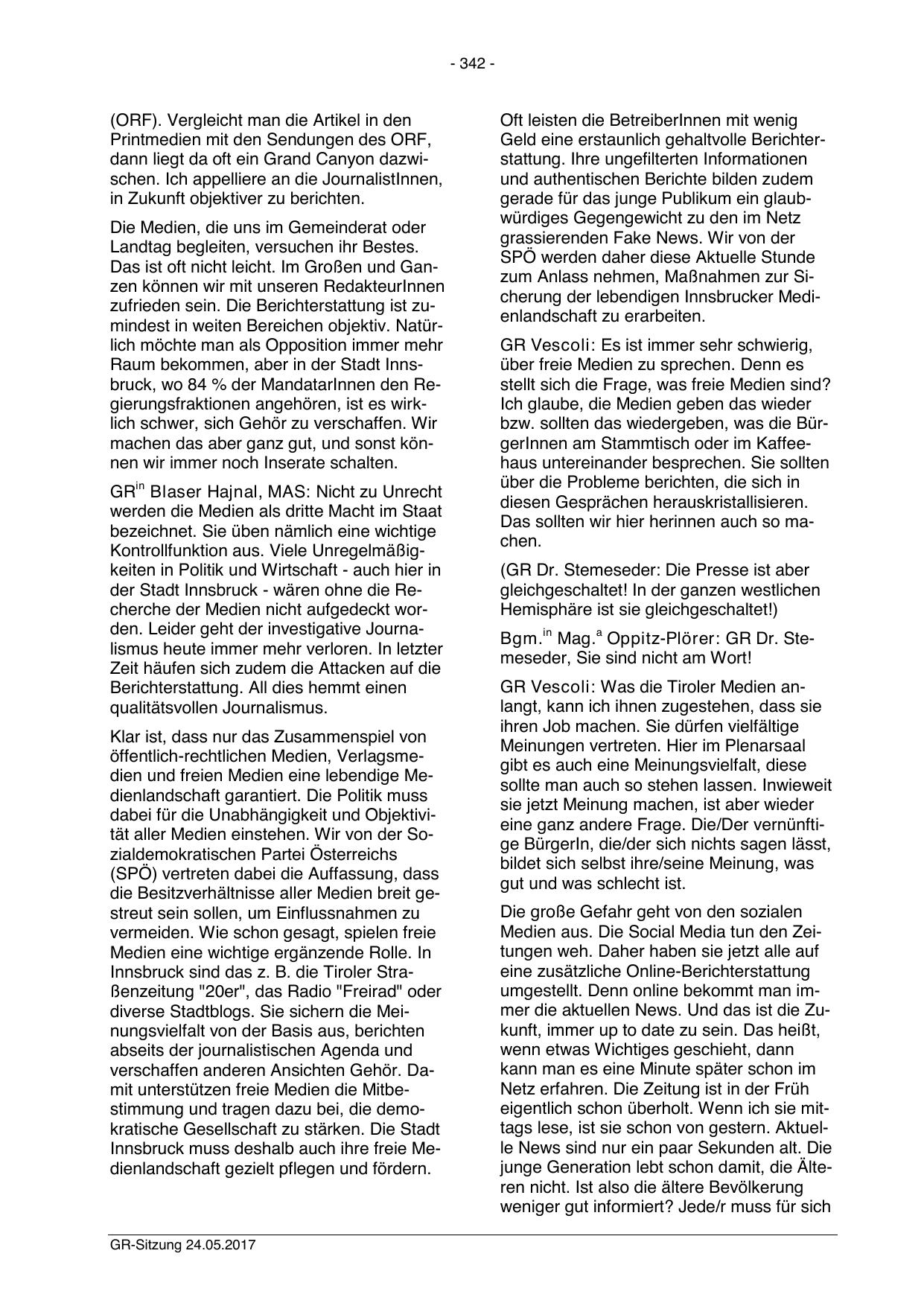Bgm.in Mag.a Oppitz-Plörer: GR Dr. Stemeseder, Sie sind nicht am Wort!