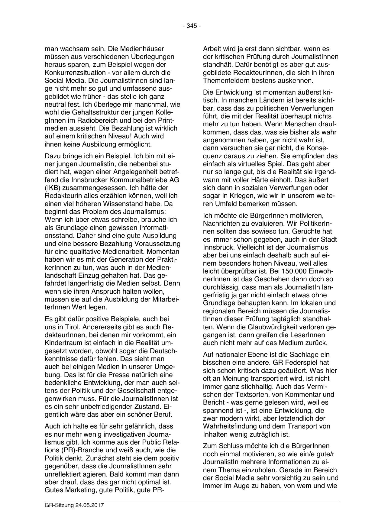 Dazu bringe ich ein Beispiel. Ich bin mit einer jungen Journalistin, die nebenbei studiert hat, wegen einer Angelegenheit betreffend die Innsbrucker Kommunalbetriebe AG