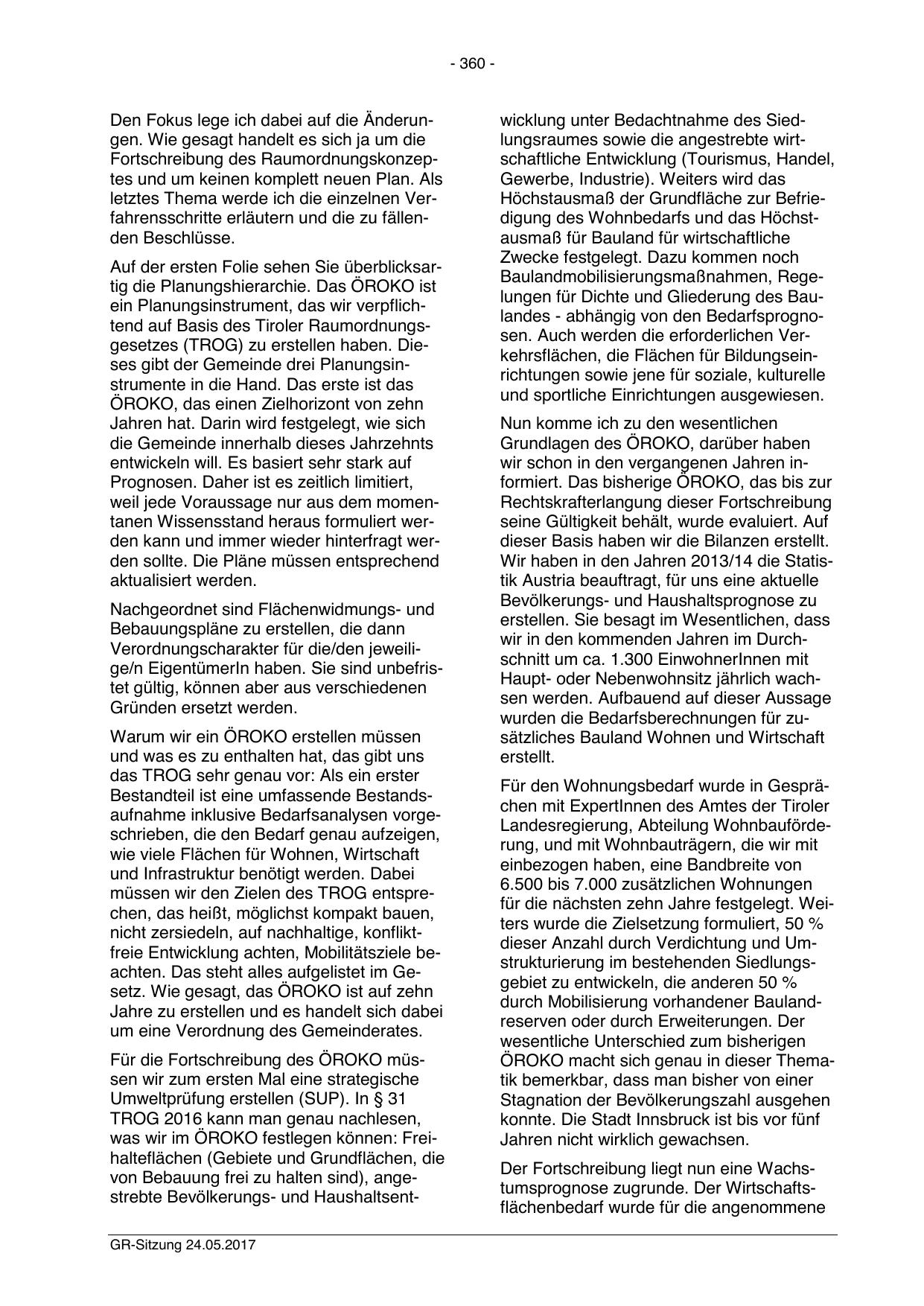 von Bebauung frei zu halten sind), angestrebte Bevölkerungs- und HaushaltsentGR-Sitzung 24.05.2017