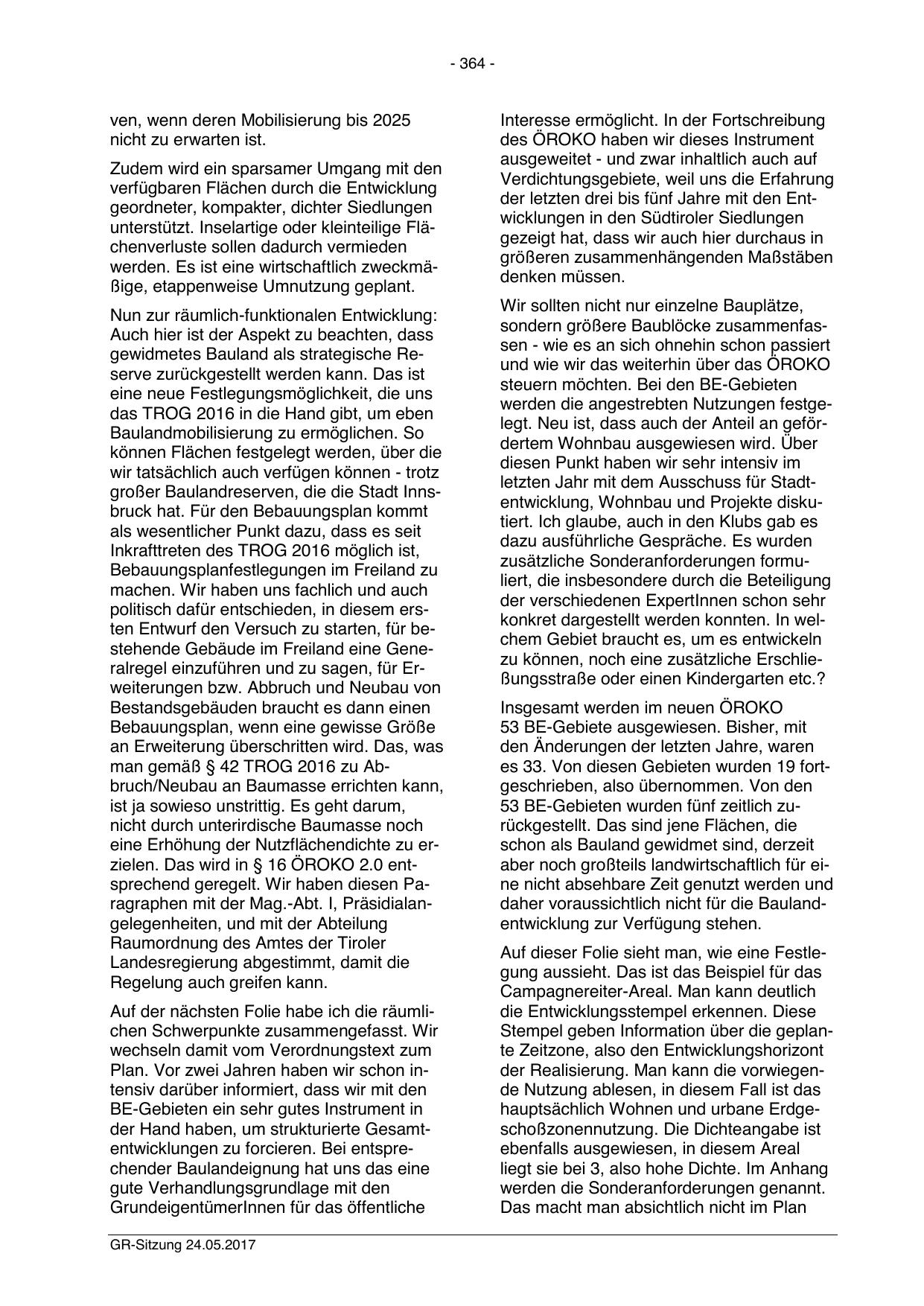 großer Baulandreserven, die die Stadt Innsbruck hat. Für den Bebauungsplan kommt