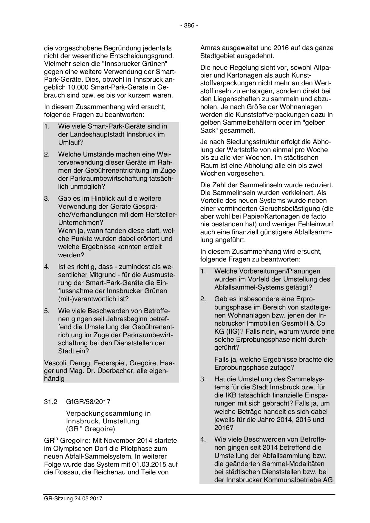 Ist es richtig, dass - zumindest als wesentlicher Mitgrund - für die Ausmusterung der Smart-Park-Geräte die Einflussnahme der Innsbrucker Grünen