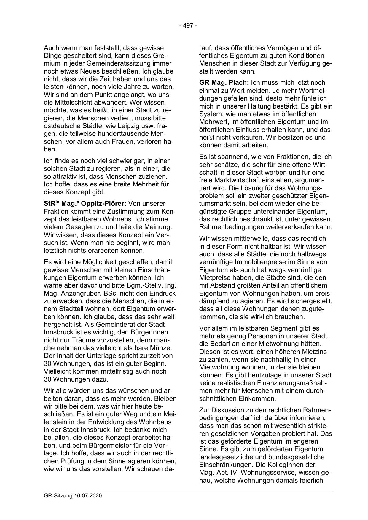 Dinge gescheitert sind, kann dieses Gremium in jeder Gemeinderatssitzung immer