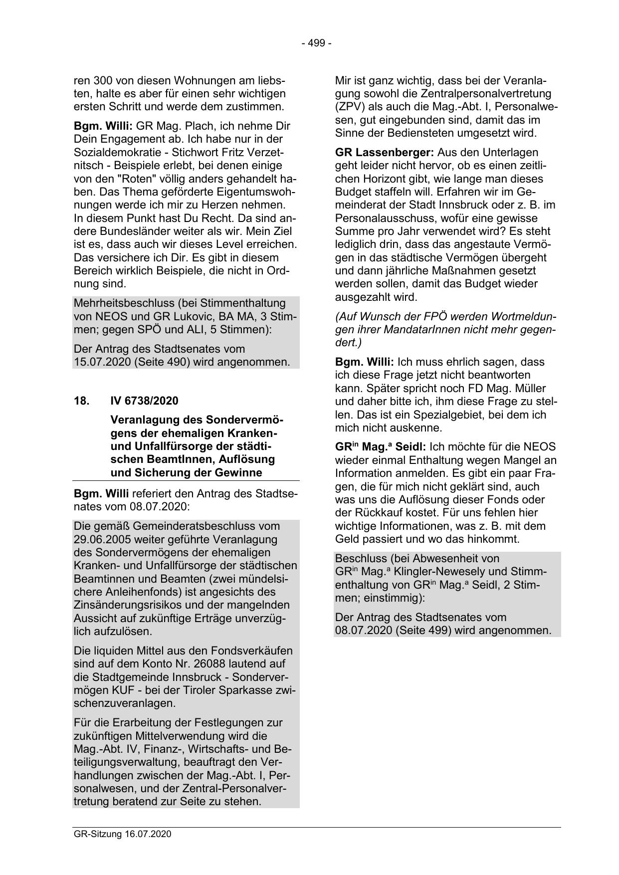 Budget staffeln will. Erfahren wir im Gemeinderat der Stadt Innsbruck oder z. B. im