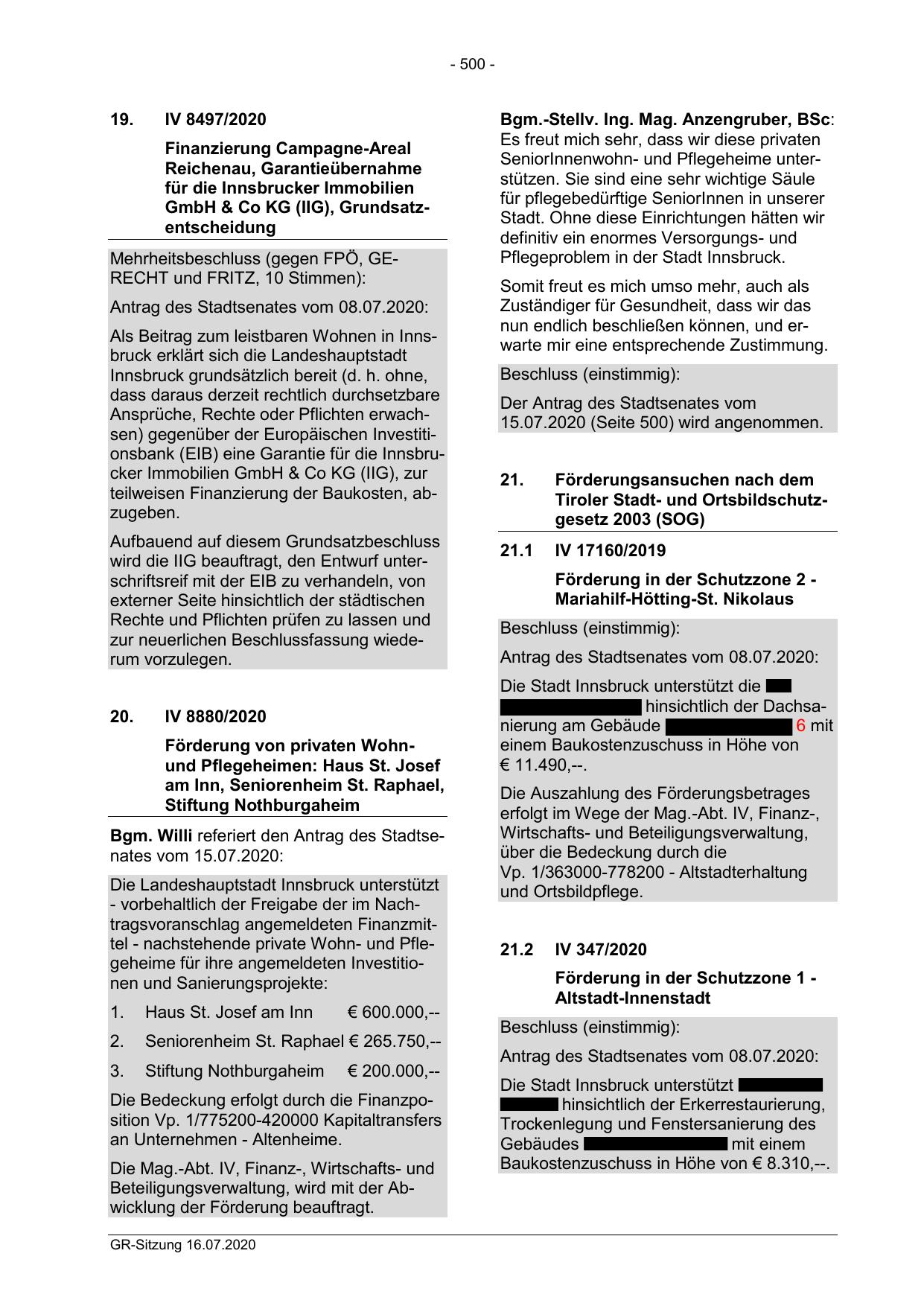 Mehrheitsbeschluss (gegen FPÖ, GERECHT und FRITZ, 10 Stimmen):