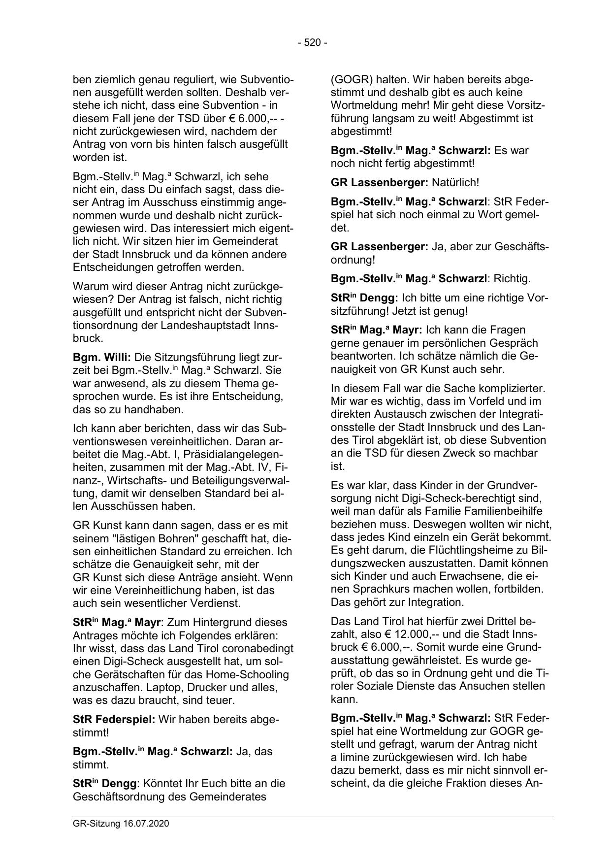 direkten Austausch zwischen der Integrationsstelle der Stadt Innsbruck und des Landes Tirol abgeklärt ist, ob diese Subvention