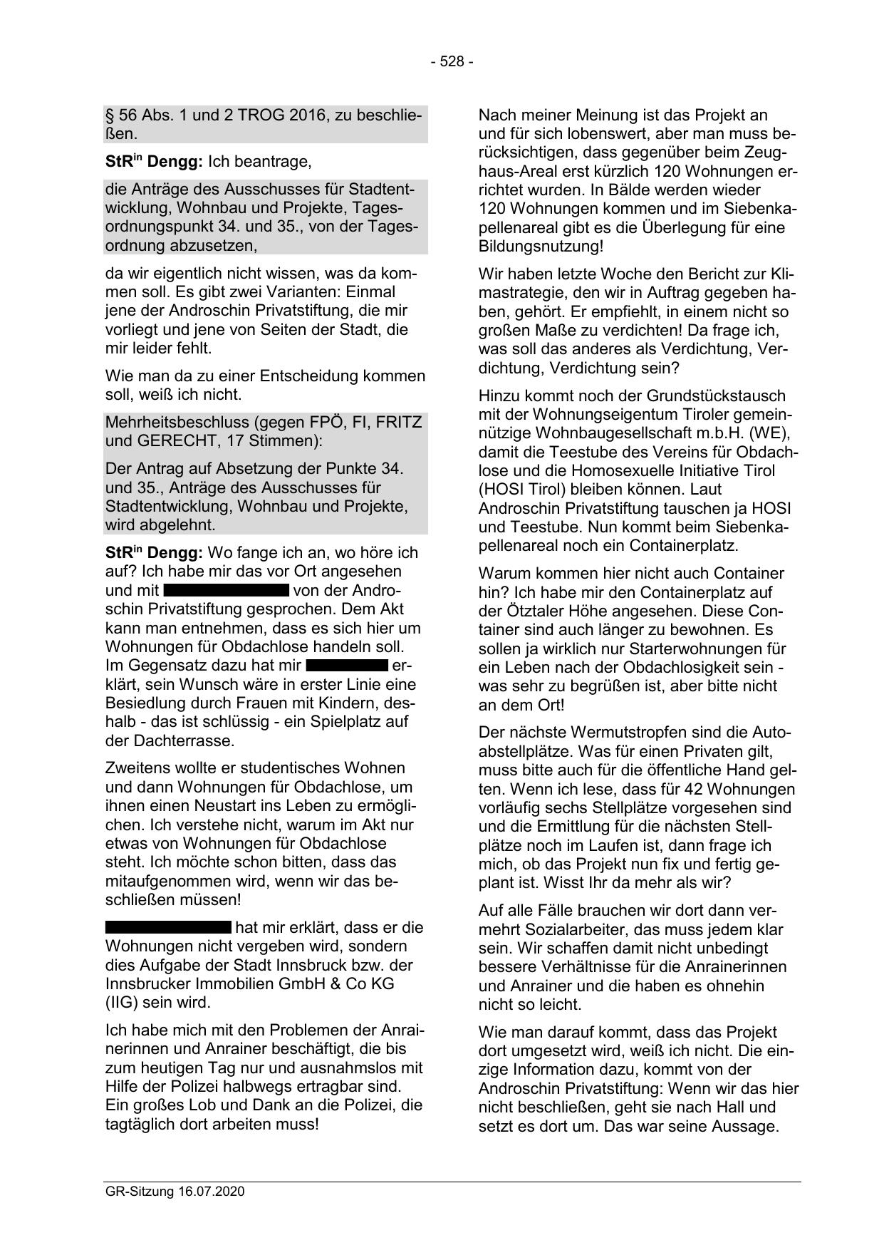 Mehrheitsbeschluss (gegen FPÖ, FI, FRITZ