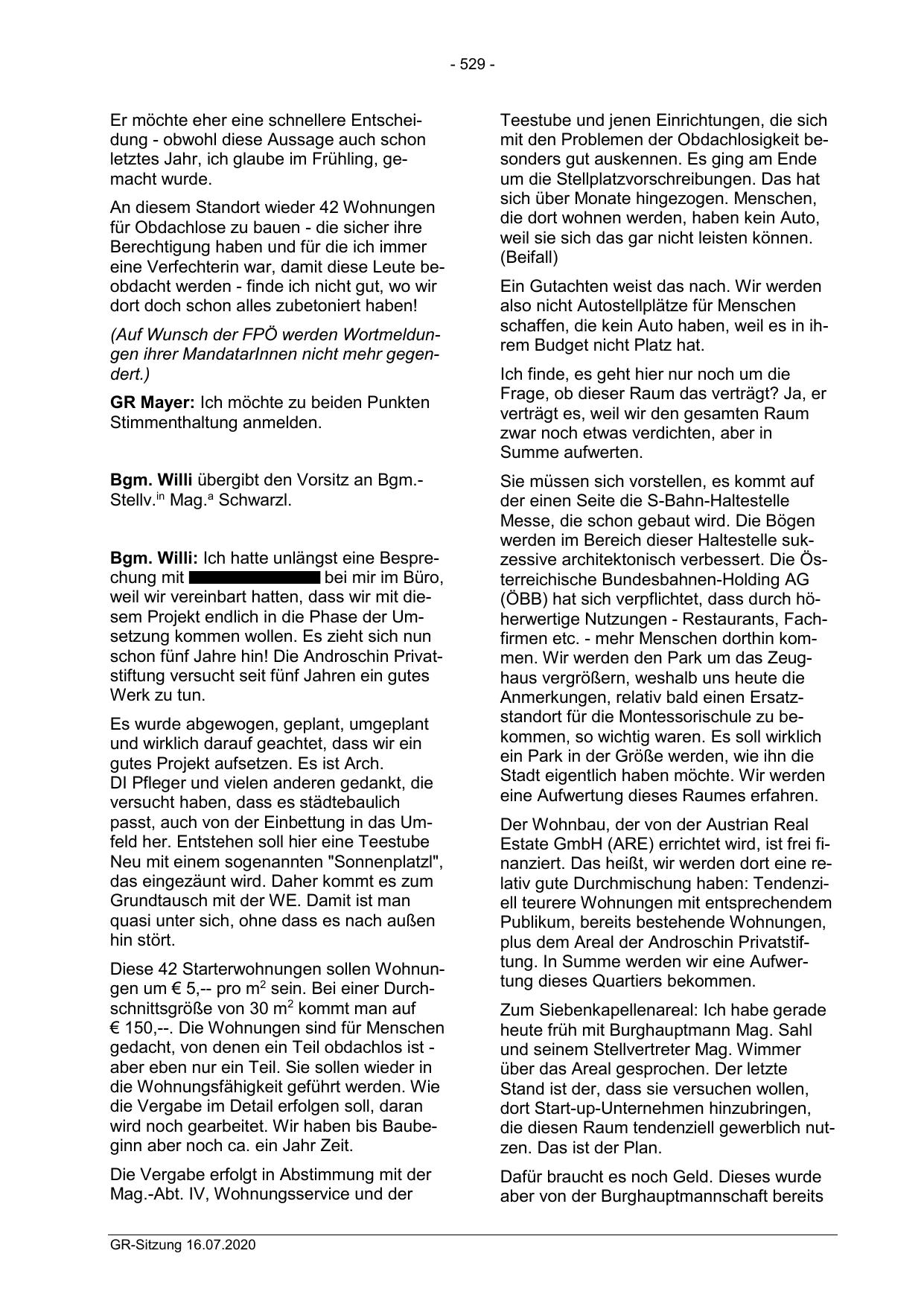 (Auf Wunsch der FPÖ werden Wortmeldungen ihrer MandatarInnen nicht mehr gegendert.)