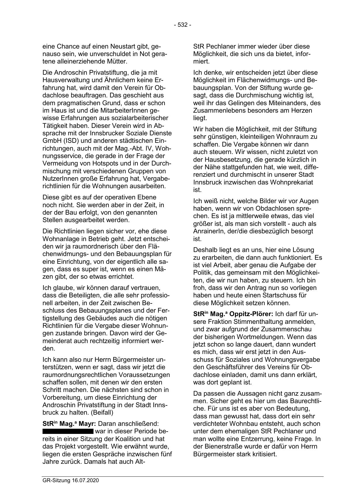 Androschin Privatstiftung in der Stadt Innsbruck zu halten. (Beifall)