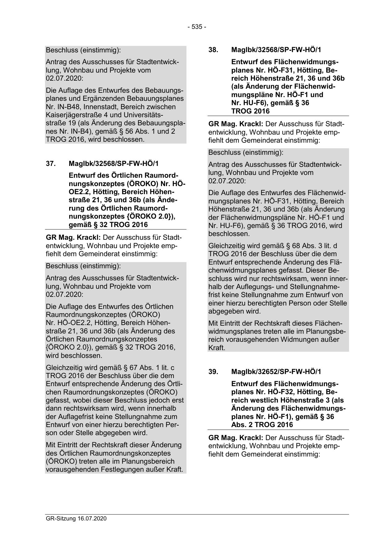 {ÖROKO 2.0}), gemäß § 32 TROG 2016,