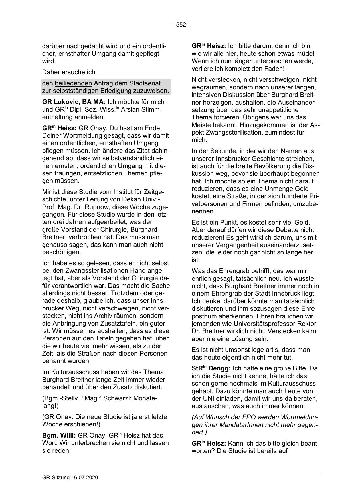 Bgm. Willi: GR Onay, GRin Heisz hat das