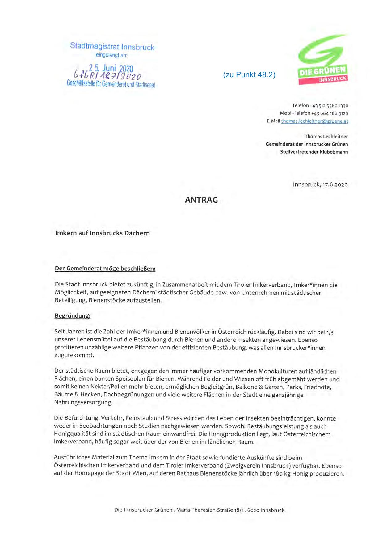 Die Innsbrucker Gr ünen . Maria-Theresien- Straße 18 /1.6020 Innsbruck