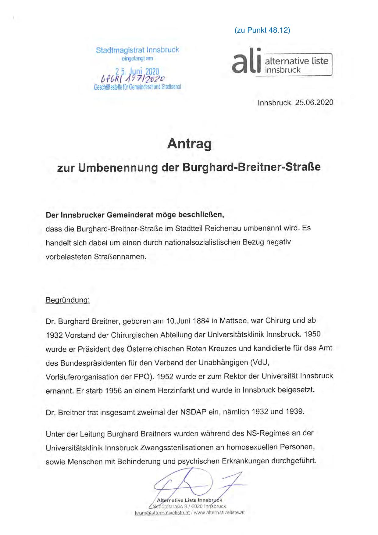 zur Umbenennung der Burghard-Breitner-Straße