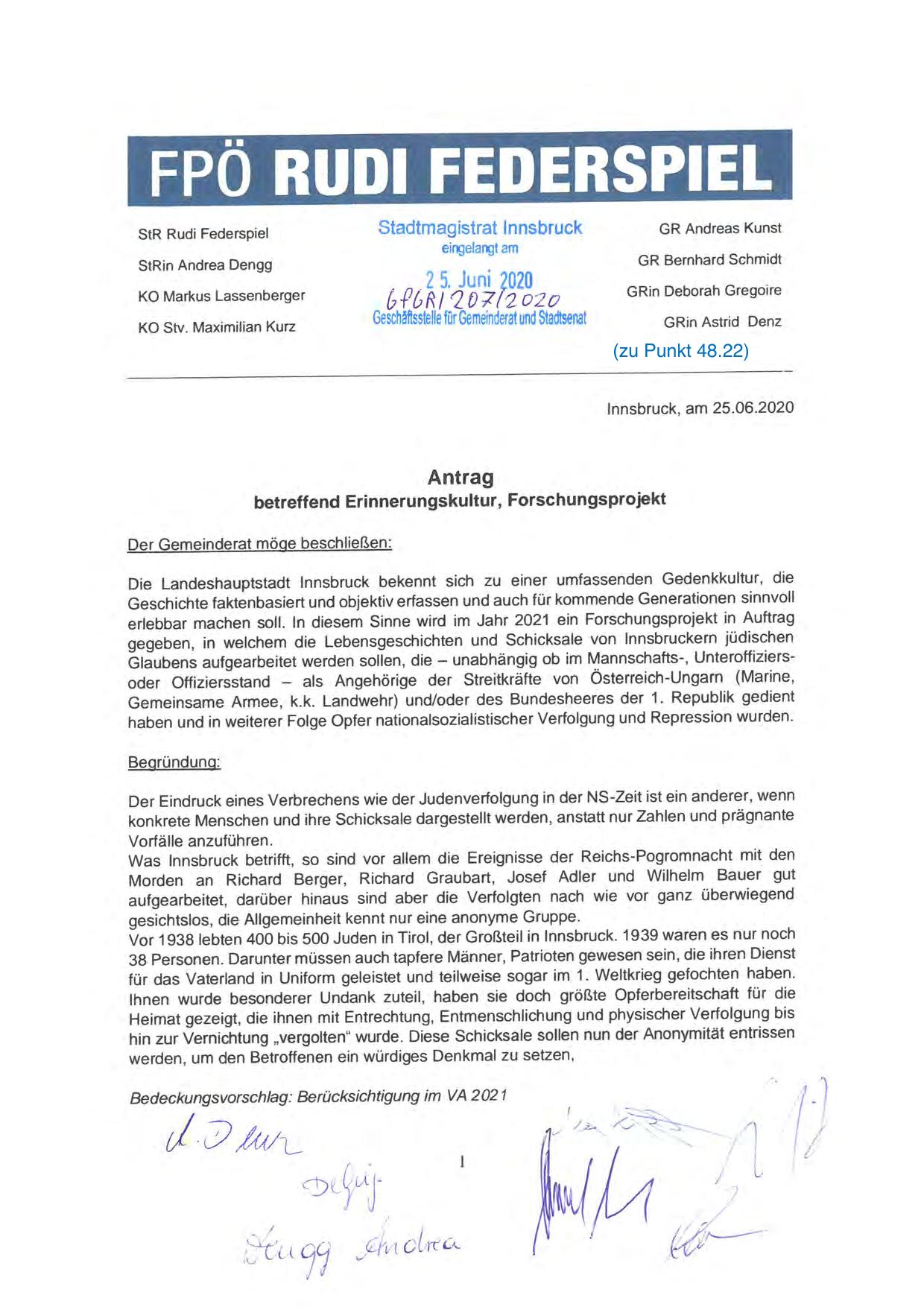 Die Landeshauptstadt Innsbruck bekennt sich zu einer umfassenden Gedenkkultur, die