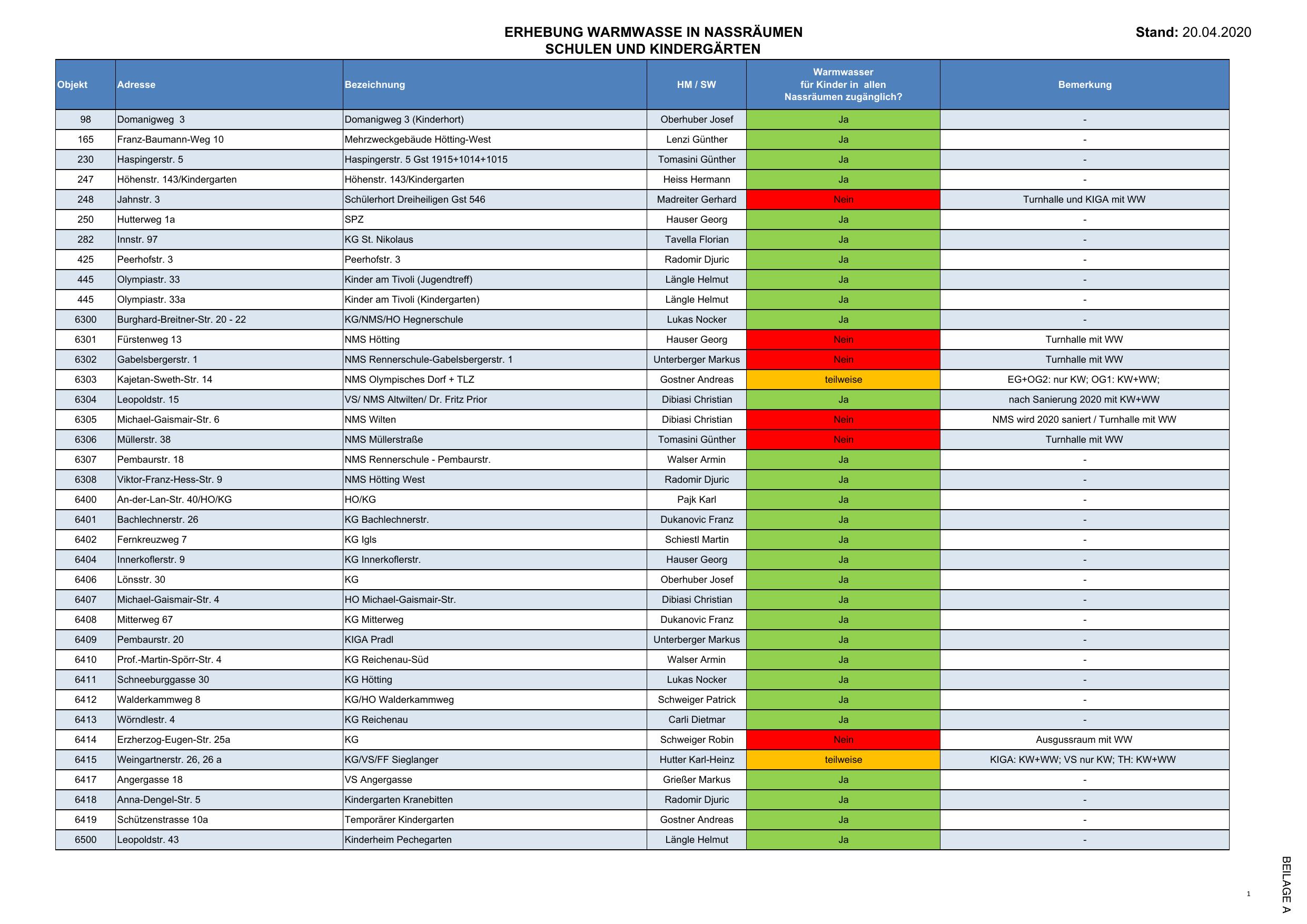 ERHEBUNG WARMWASSE IN NASSRÄUMEN